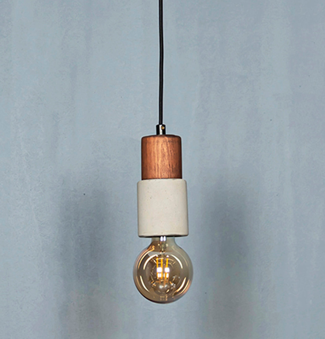 Tochi Sarkıt, küçük formda gri beton ve wenge ahşap birlikteliğini sunar. E27 duy uyumuyla yumuşak ve yaygın ışık sağlar.