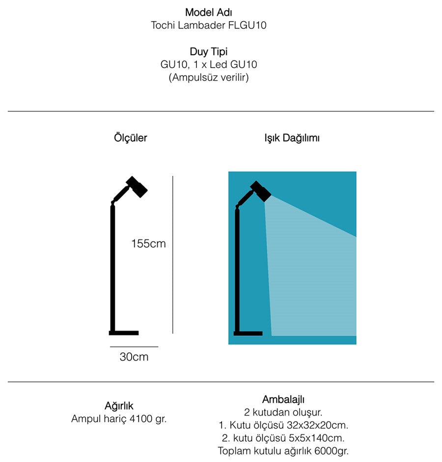 Tochi Lambader; oturma odasında, okuma köşelerinde veya modern ofislerde şık bir tamamlayıcıdır.