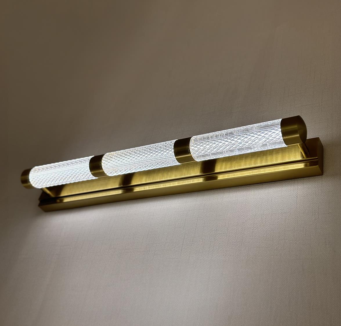 Alabanda Aplik, eskitme tonlu metal yüzeyine zarifçe tutunan üç şeffaf akrilik küreyle modern ve zamansız bir atmosfer sunar. İnce ve yatay formuyla hem estetik hem işlevsel bir aydınlatma sağlar.