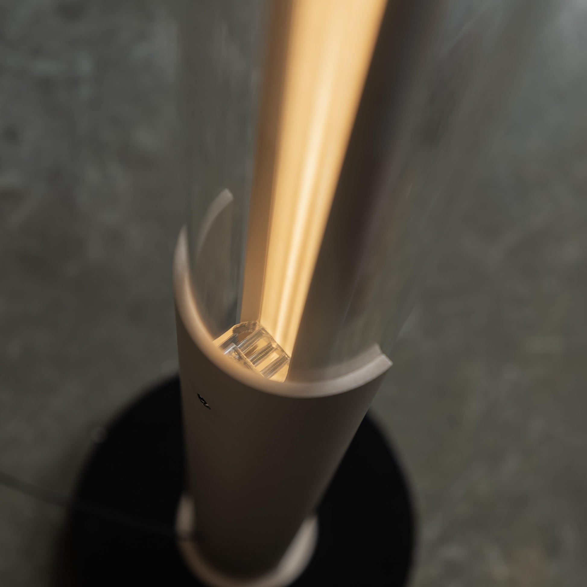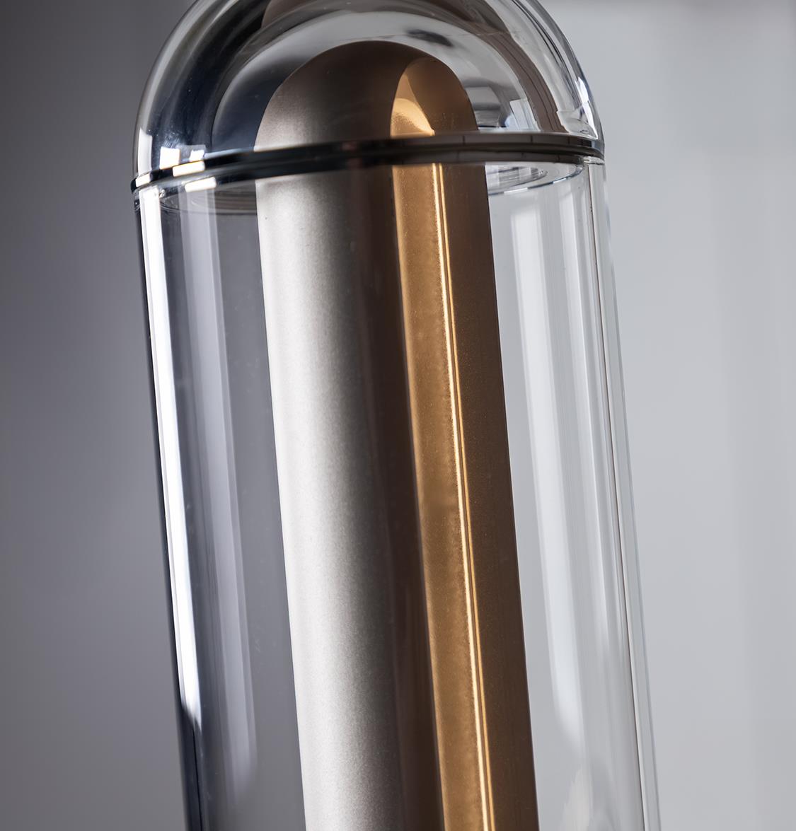 Bermuda Lambader, bej metal detayları ve zarif şeffaf cam tasarımıyla modern iç mekanlara sakin ama şık bir dokunuş getiriyor. İnce ve uzun formu, odanın köşesinde bile dikkat çekici bir varlık sergilerken, çağdaş dekorasyon stiline zarif bir ışıltı katıyor.