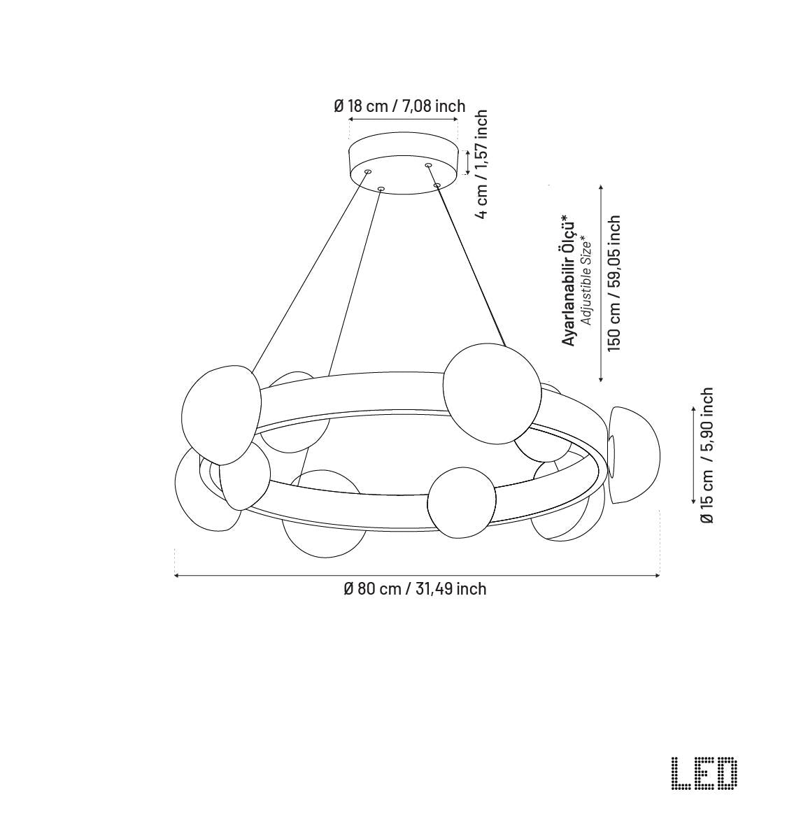 Tüm elektrik bağlantıları yapılmış şekilde, montaja hazır olarak teslim edilen bu tasarım; salonlarda, yemek alanlarında veya geniş ofislerde estetik bir bütünlük yaratmak için ideal bir tercihtir.