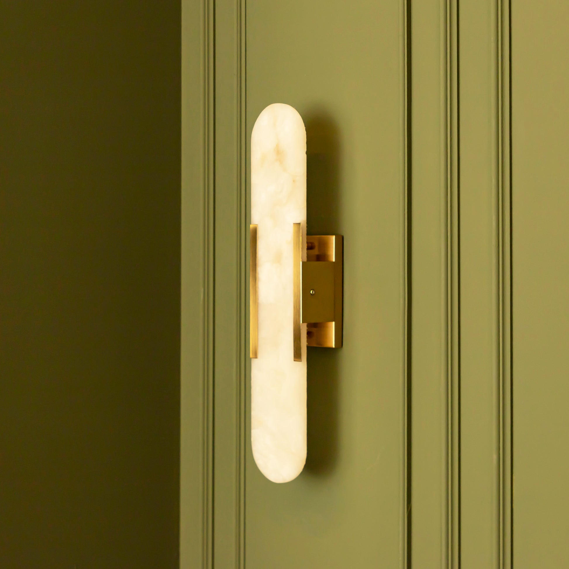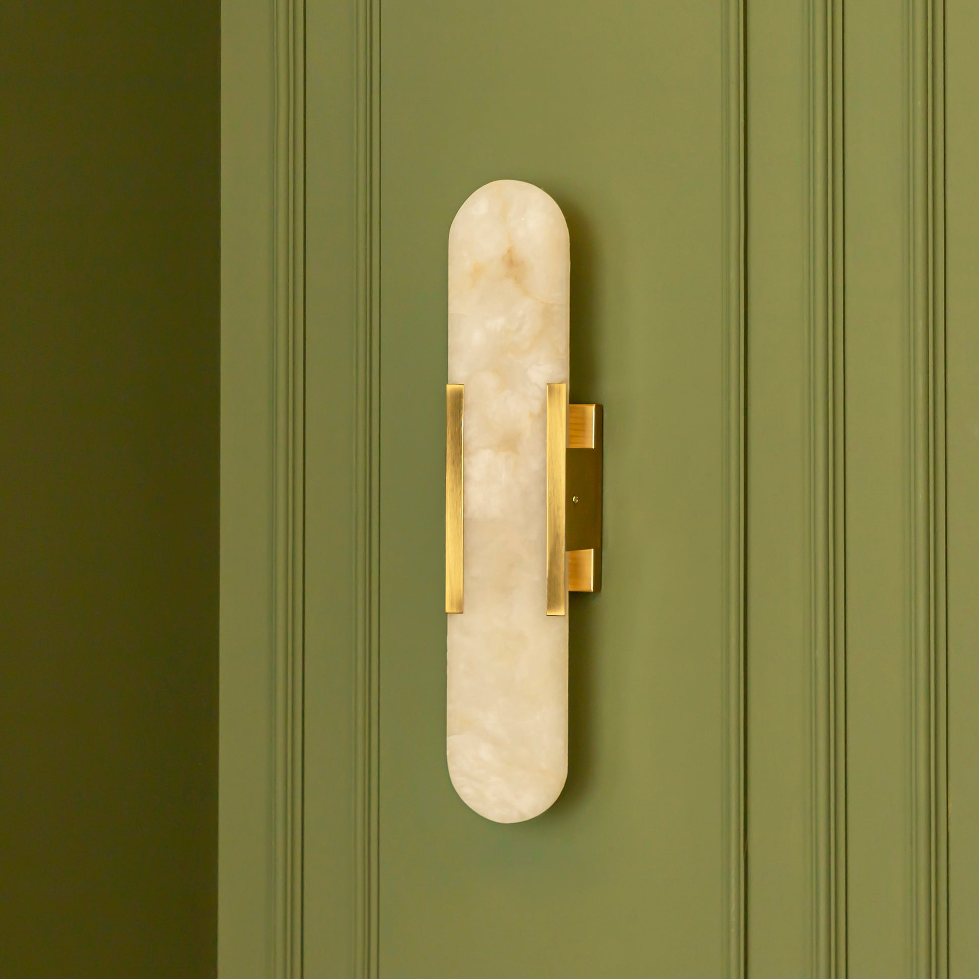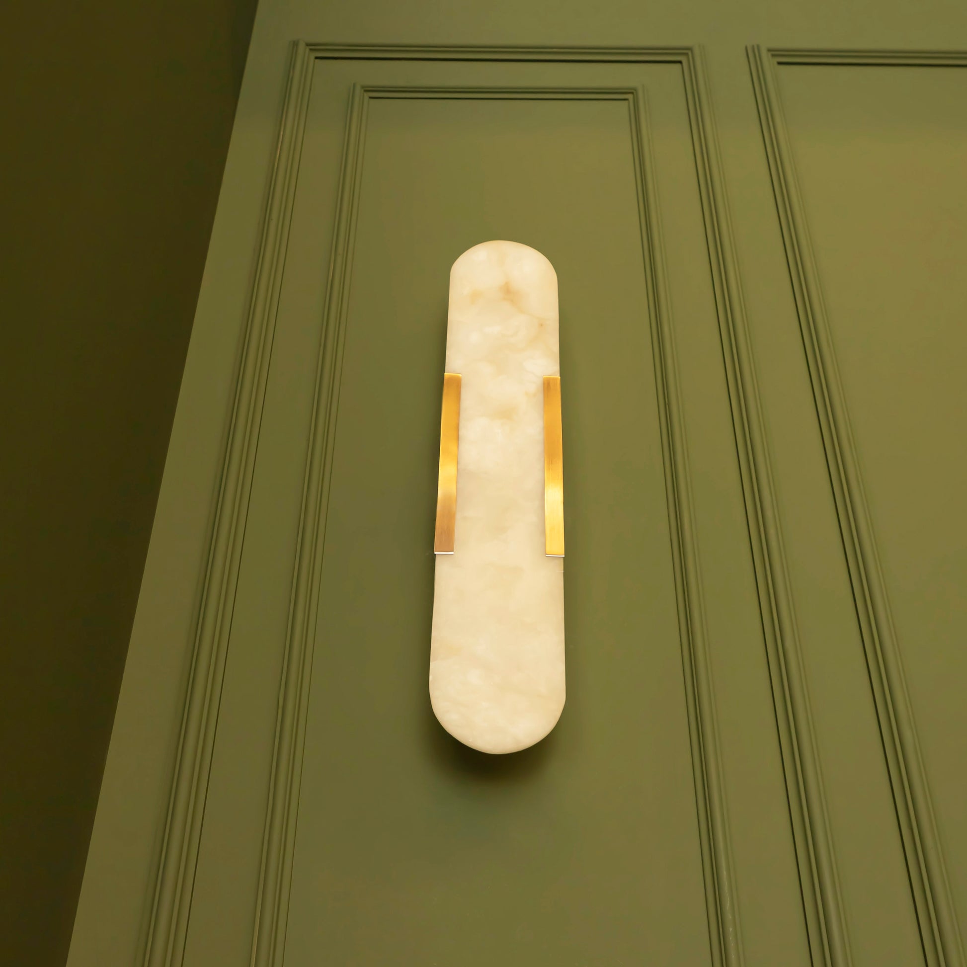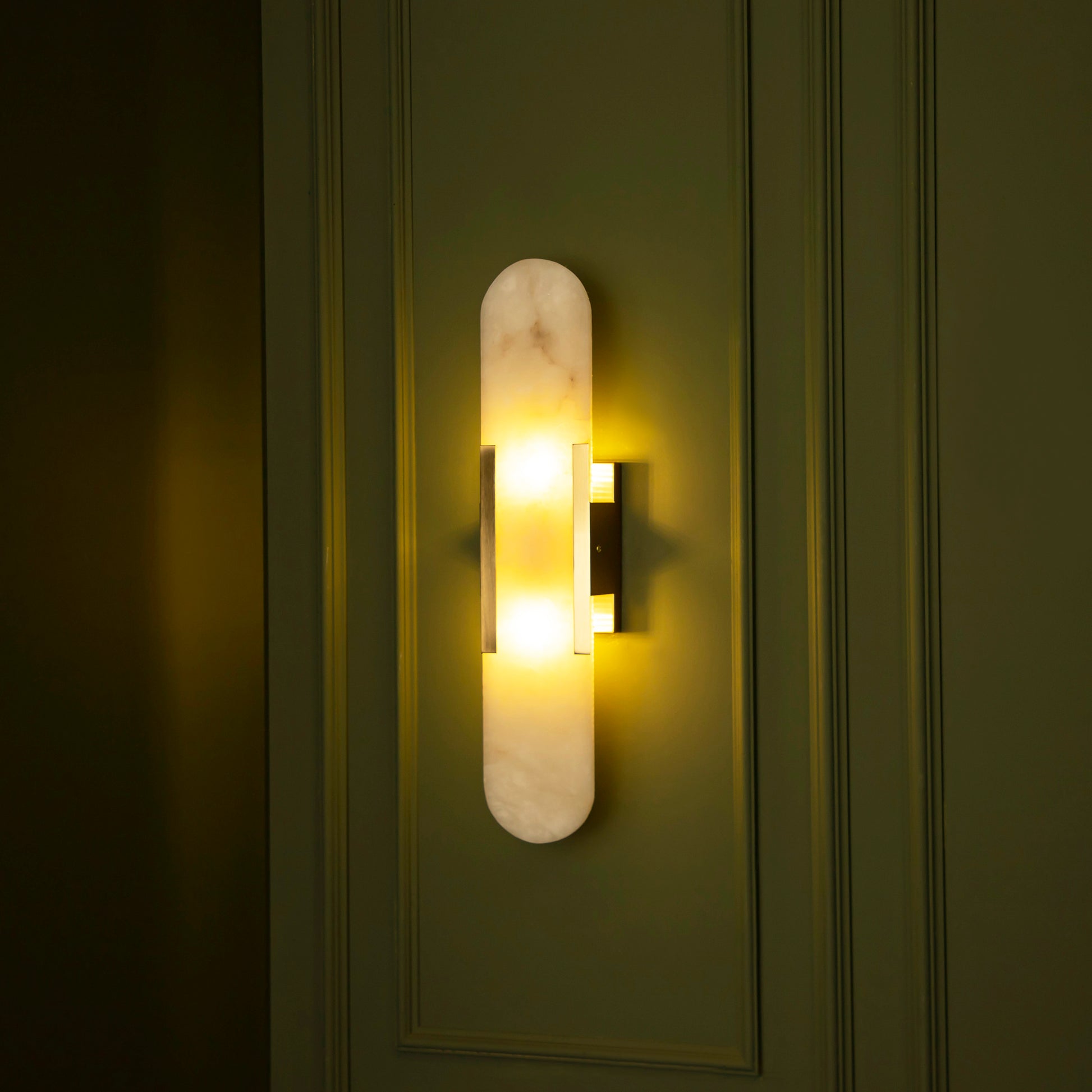Hristos Eskitme Aplik, sofistike eskitme tonları ve zarif mermer detaylarıyla nostaljik bir atmosfer yaratır. İnce uzun formuyla sade ama etkileyici bir aydınlatma sunar.