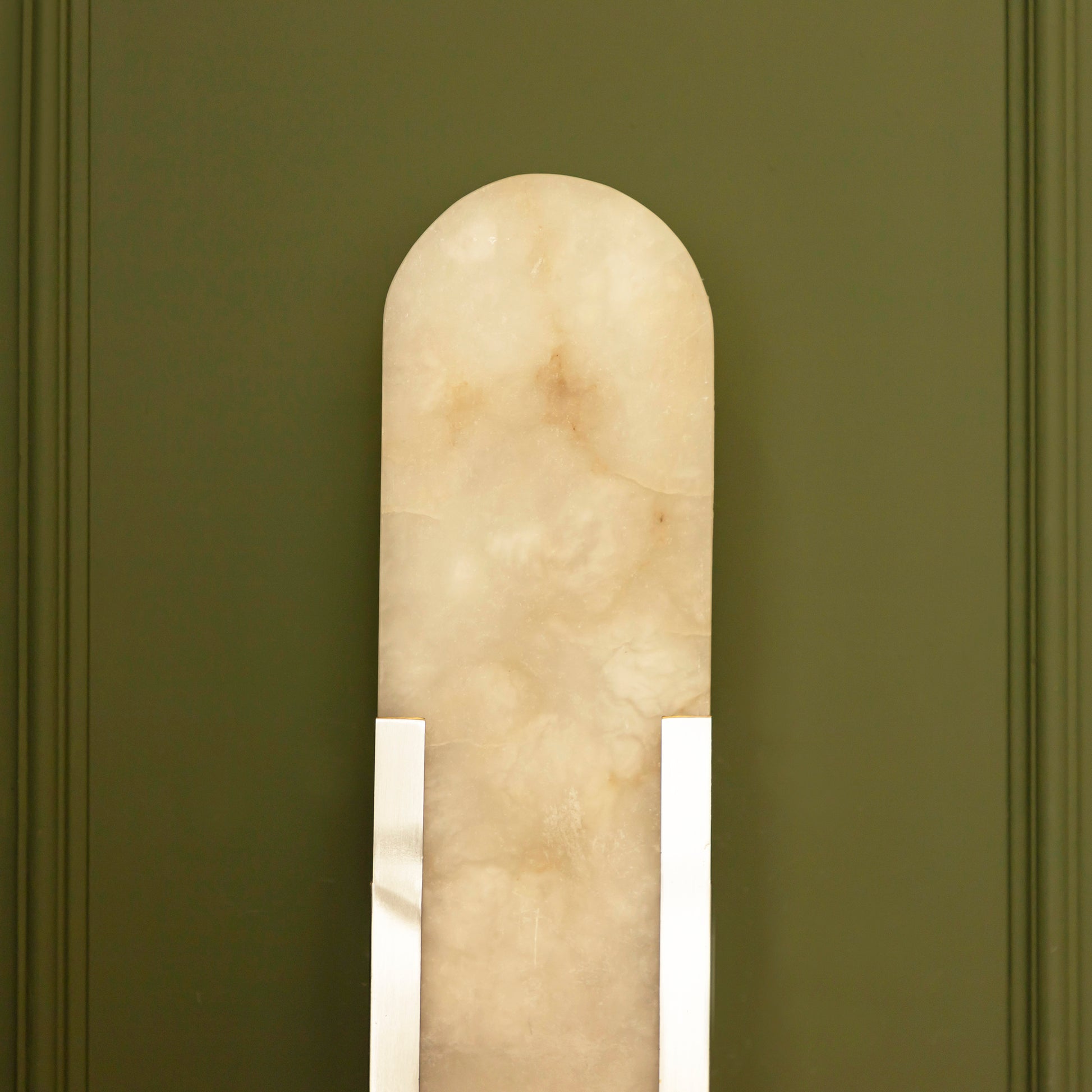Hristos Aplik, parlak yüzeyi ve doğal mermer detaylarıyla güçlü bir kontrast yaratır. Işığın krom gövdede yansıması mekâna ferah bir enerji katarken, beyaz mermerin zarafeti tasarımı dengeler.