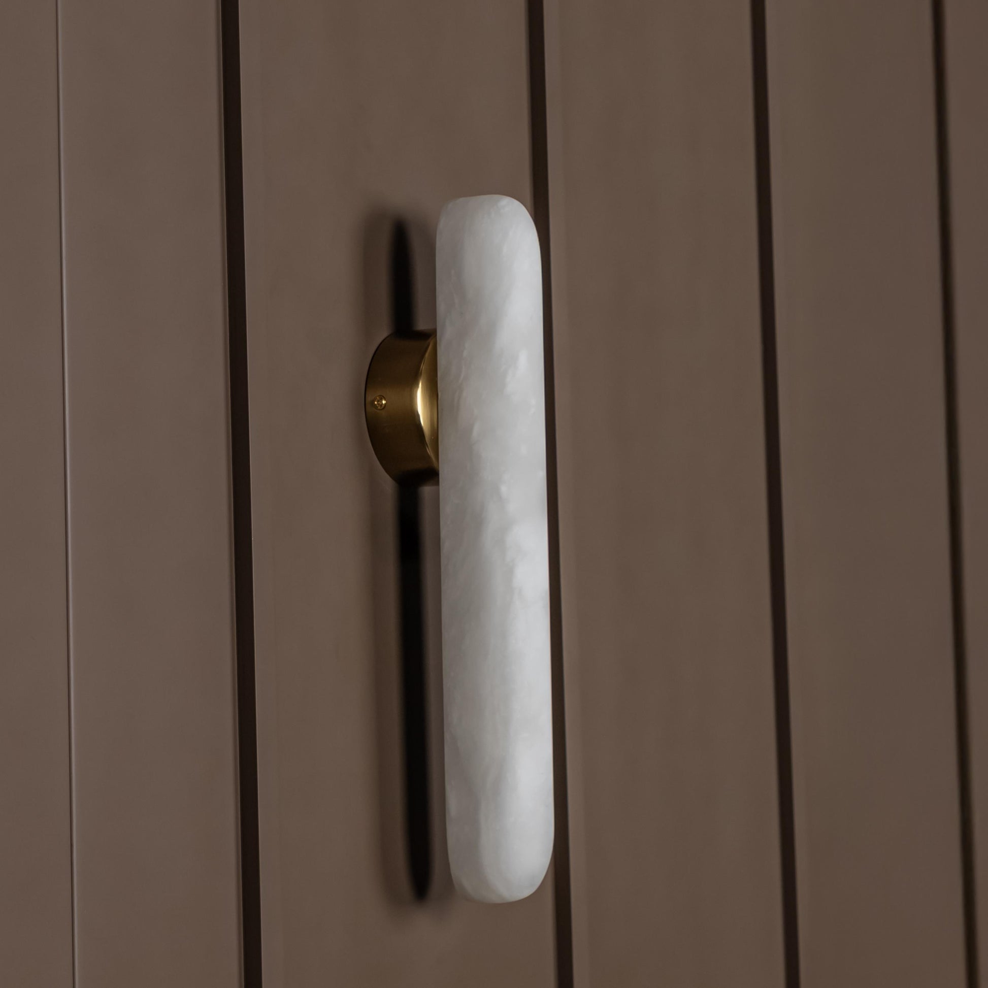 Iguazu Aplik, doğal beyaz mermer yüzeyiyle sadeliğin iç mimarideki gücünü yansıtır. İnce formu sayesinde dar duvar yüzeylerinde bile estetik bir etki yaratır.