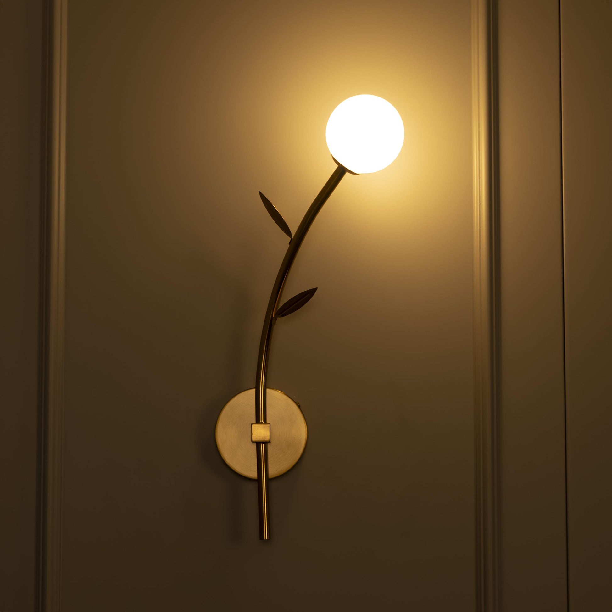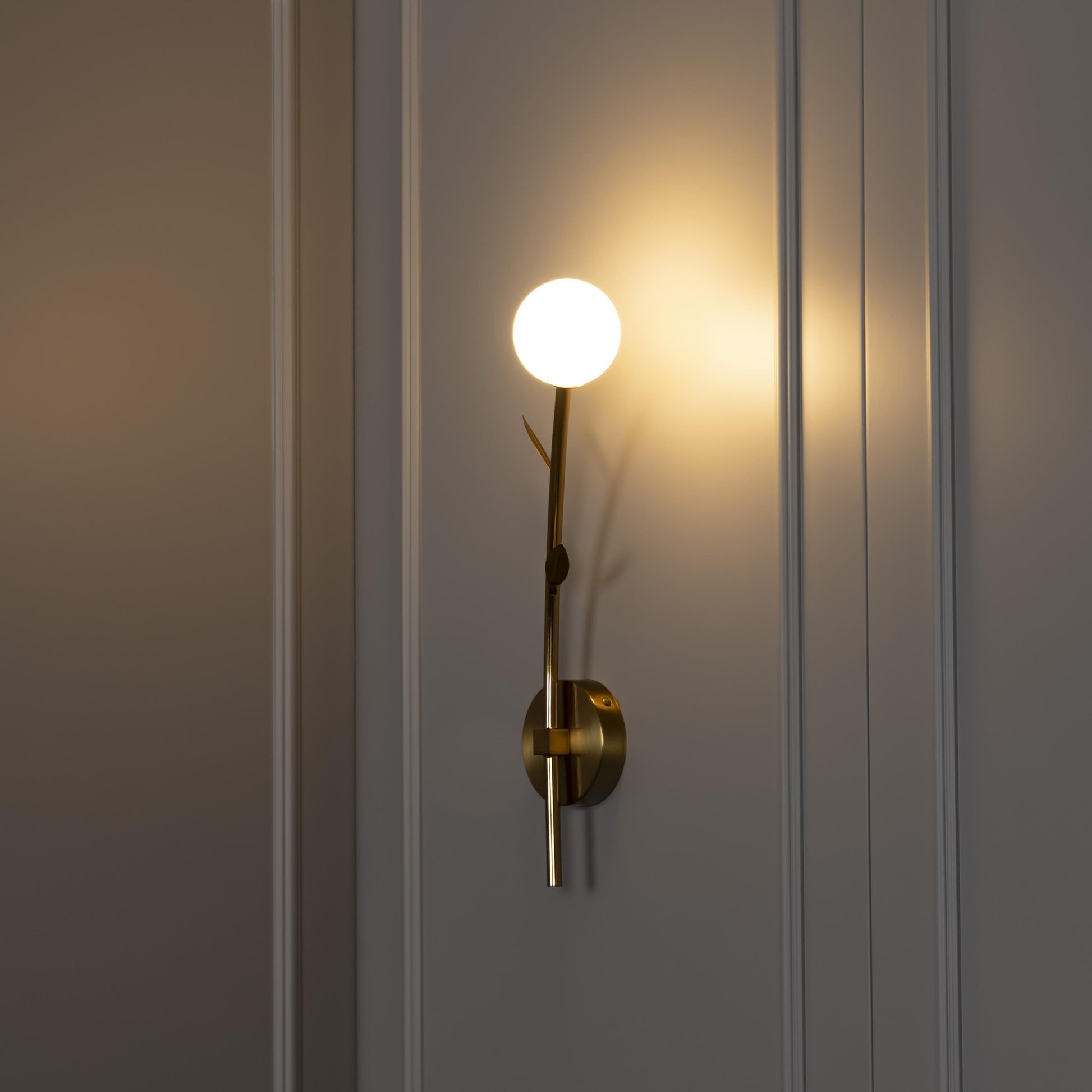 Madra Tekli Aplik, nostaljik eskitme gövdesiyle sade şıklığı opal camın yumuşak ışığıyla buluşturur. Duvar boyunca zarif bir ışık akışı sağlayarak bulunduğu alanda dikkat çeken bir detay haline gelir.