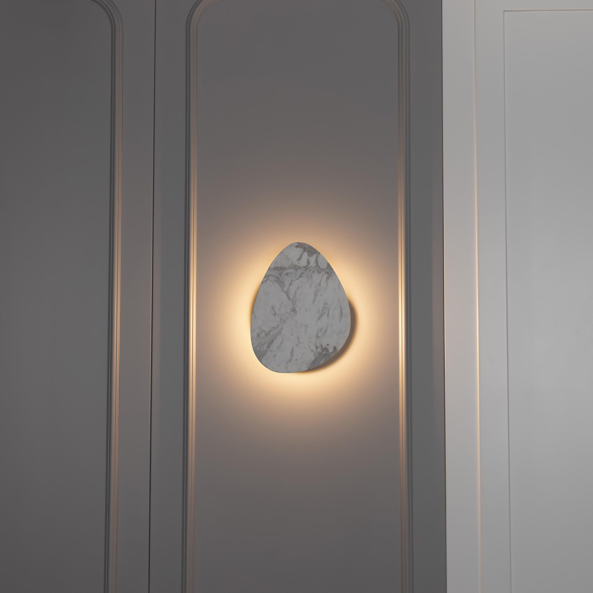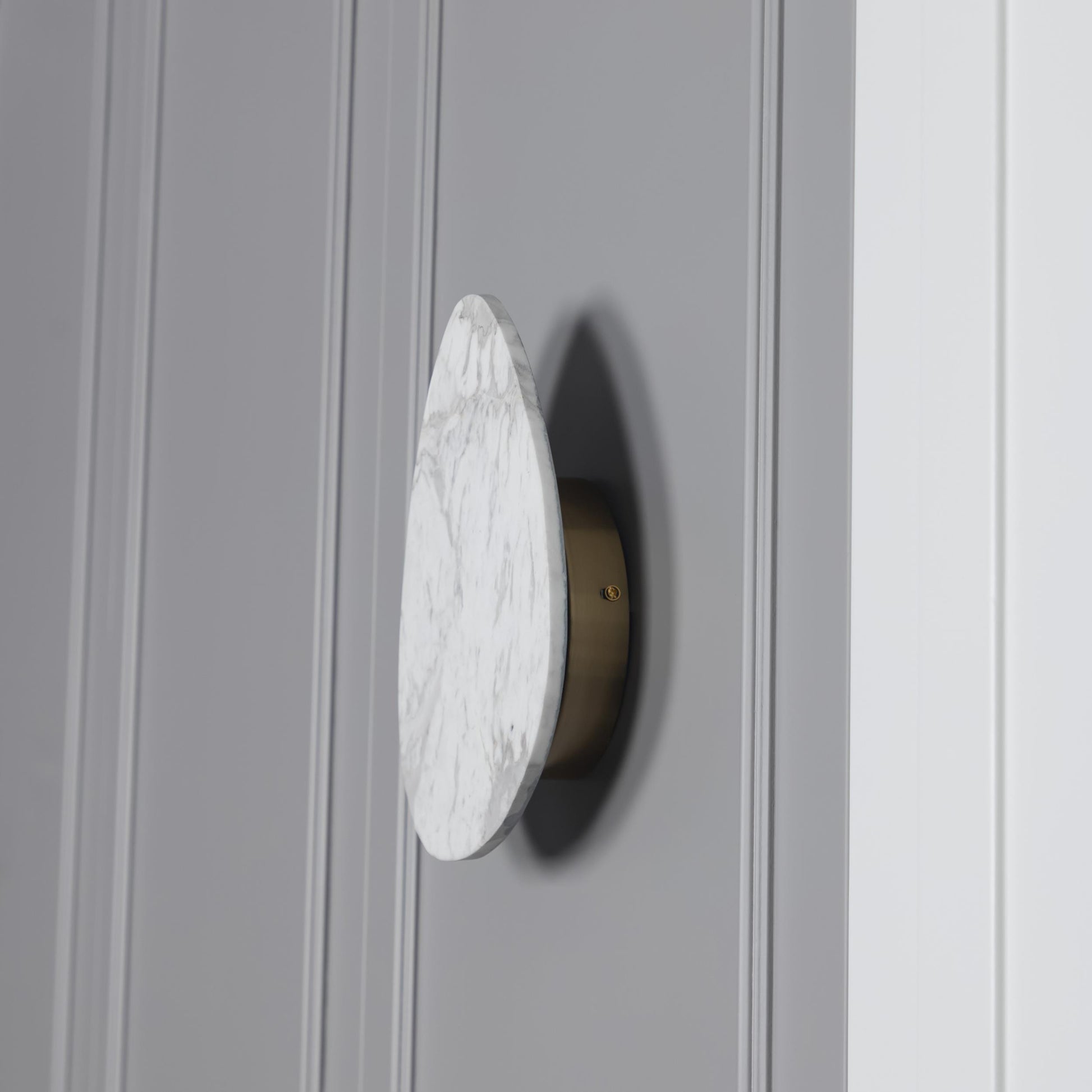 Medusa Aplik, beyaz mermerin sade ve zarif dokusunu eskitme metal ile birleştirerek sofistike bir atmosfer oluşturur. Mermerin doğal ışıltısı, LED aydınlatmayla buluştuğunda mekâna dengeli ve yumuşak bir ışık yayar.