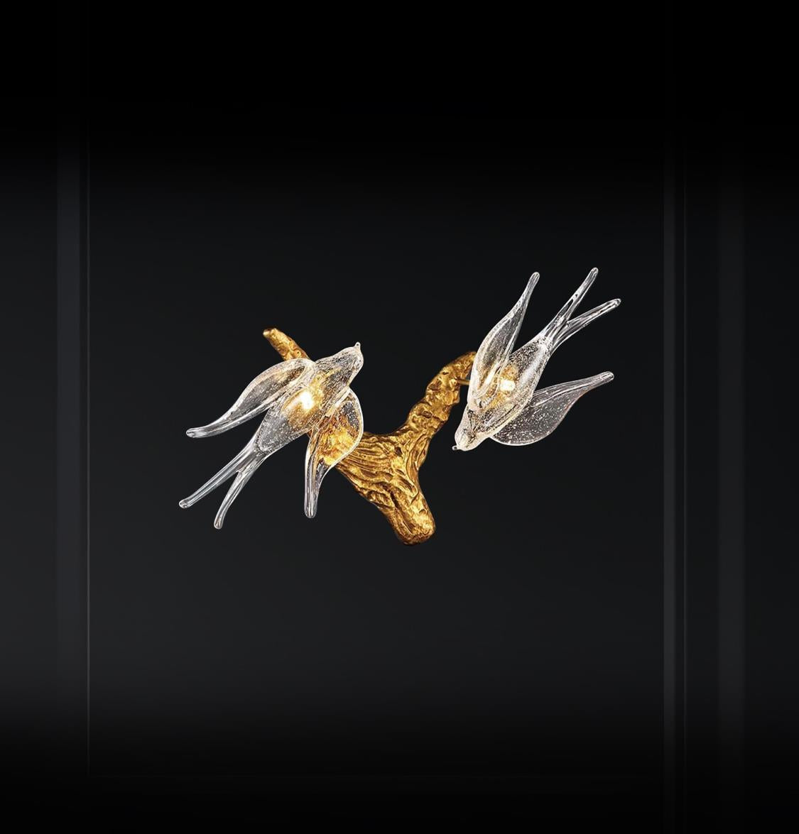 Peru Aplik, zarif kırlangıç formundaki camı ve altın pirinç gövdesiyle lüks detayları modern bir yorumla buluşturur. Şeffaf cam tasarımı, ışığın tüm mekâna estetik bir şekilde yayılmasını sağlar.