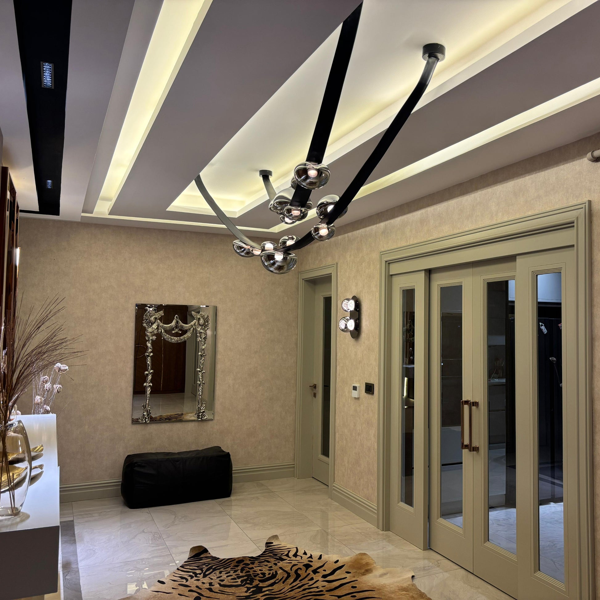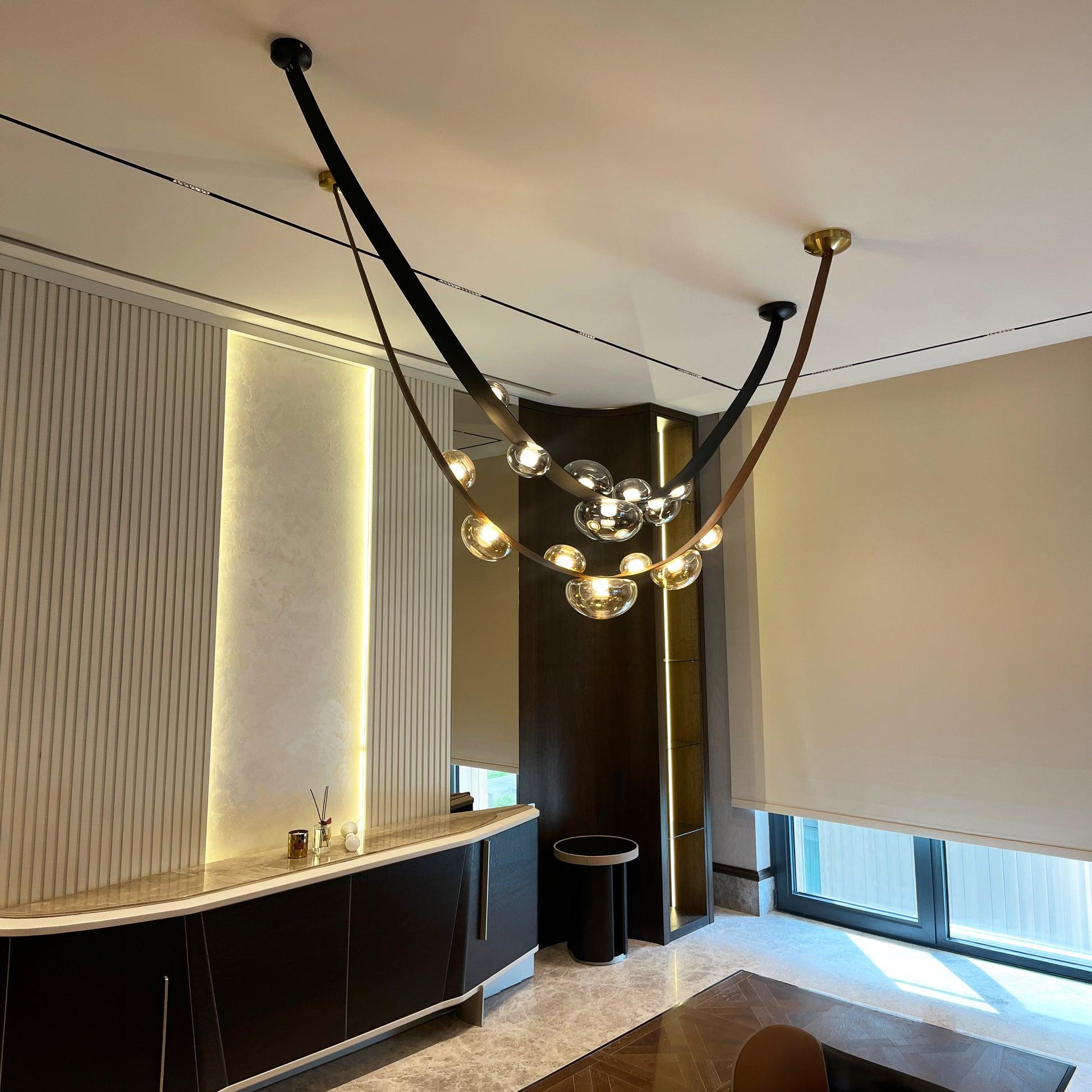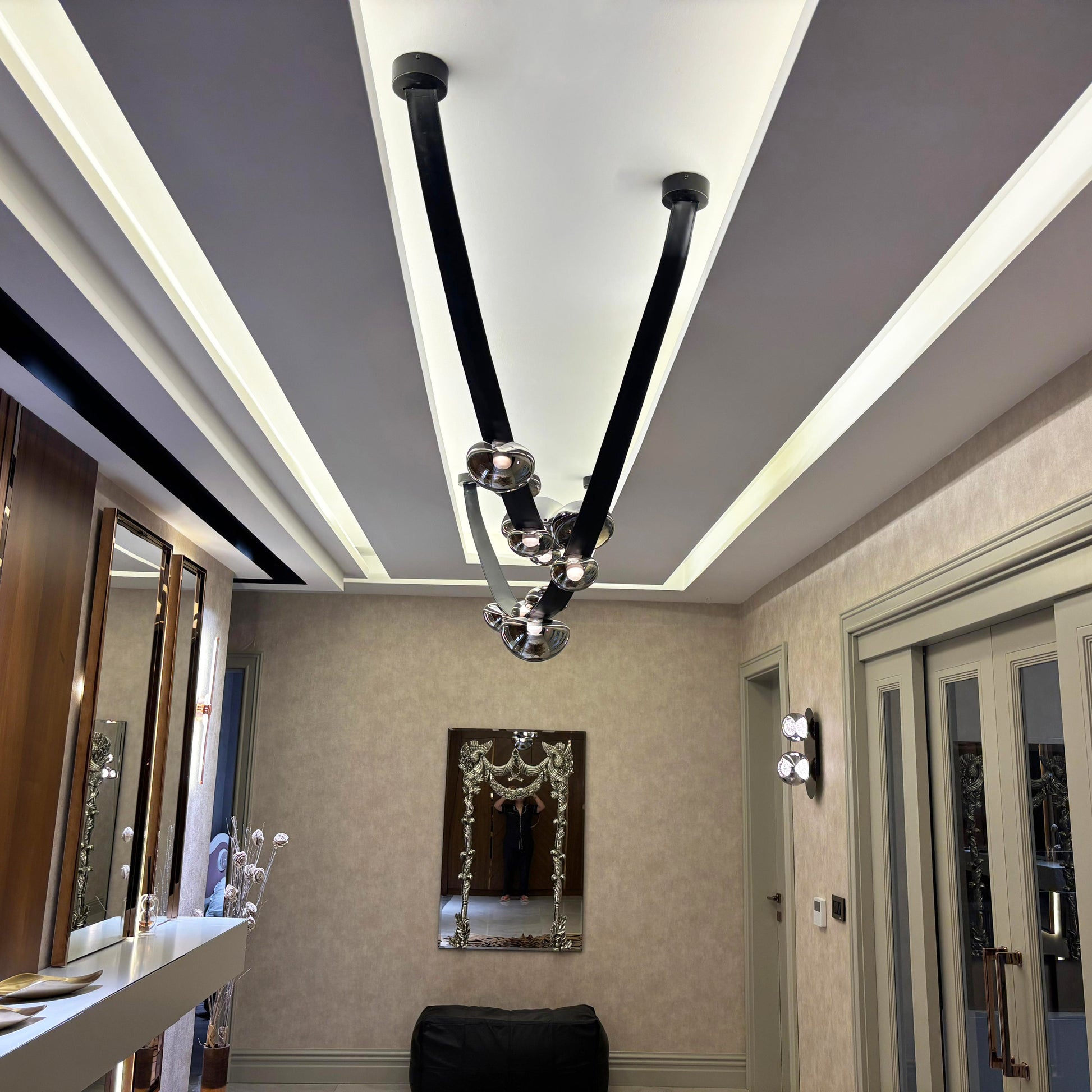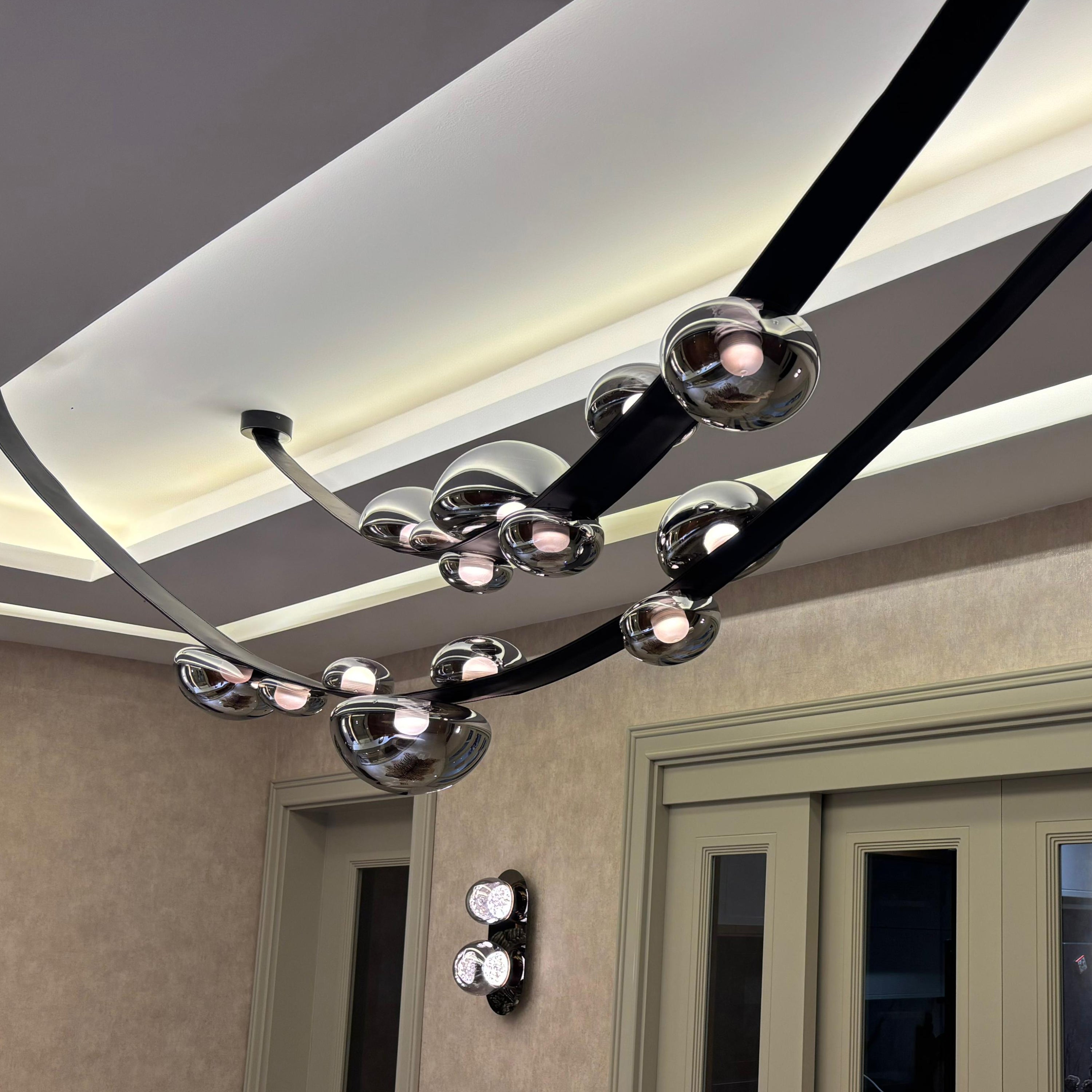 Tüm elektrik bağlantıları yapılmış olarak, montaja hazır şekilde sunulan bu özel parça; geniş alanlara estetik bir bütünlük ve şıklık katmak için tasarlandı.