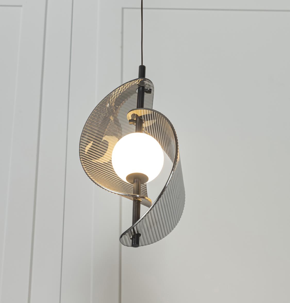 Onda Sarkıt, mekâna modern bir zarafet ve akıcı bir tasarım dili kazandırmak için oluşturuldu. Dönüşümlü formdaki füme cam yüzeyler, ışığın etrafında dans eden kıvrımlı bir siluet yaratır ve ortamı sofistike bir atmosferle buluşturur. Altın tonundaki metal taşıyıcı, ürünün heykelsi çizgilerini tamamlayarak dekorasyona benzersiz bir değer katar.