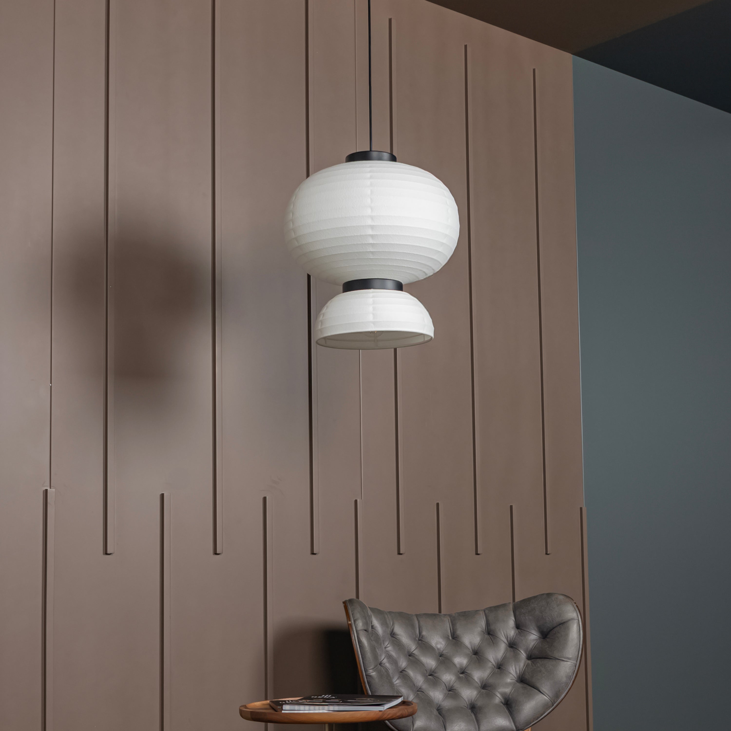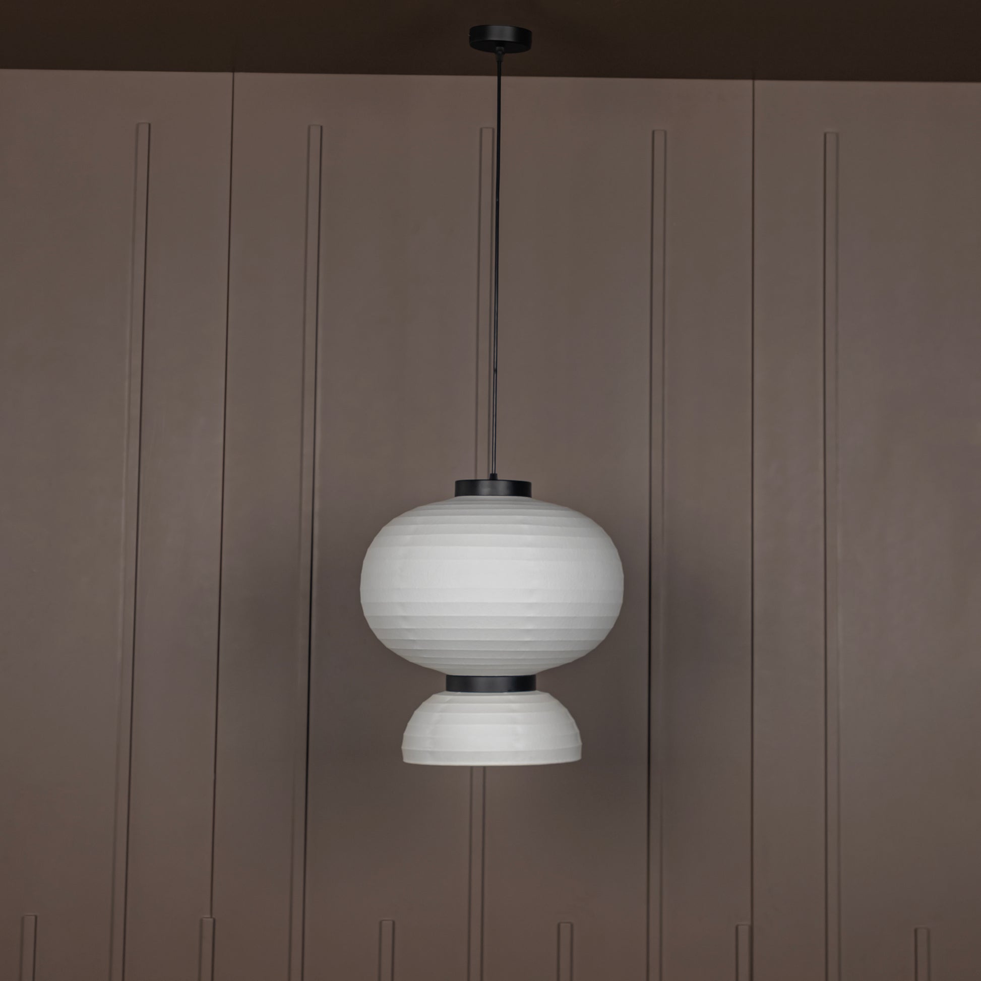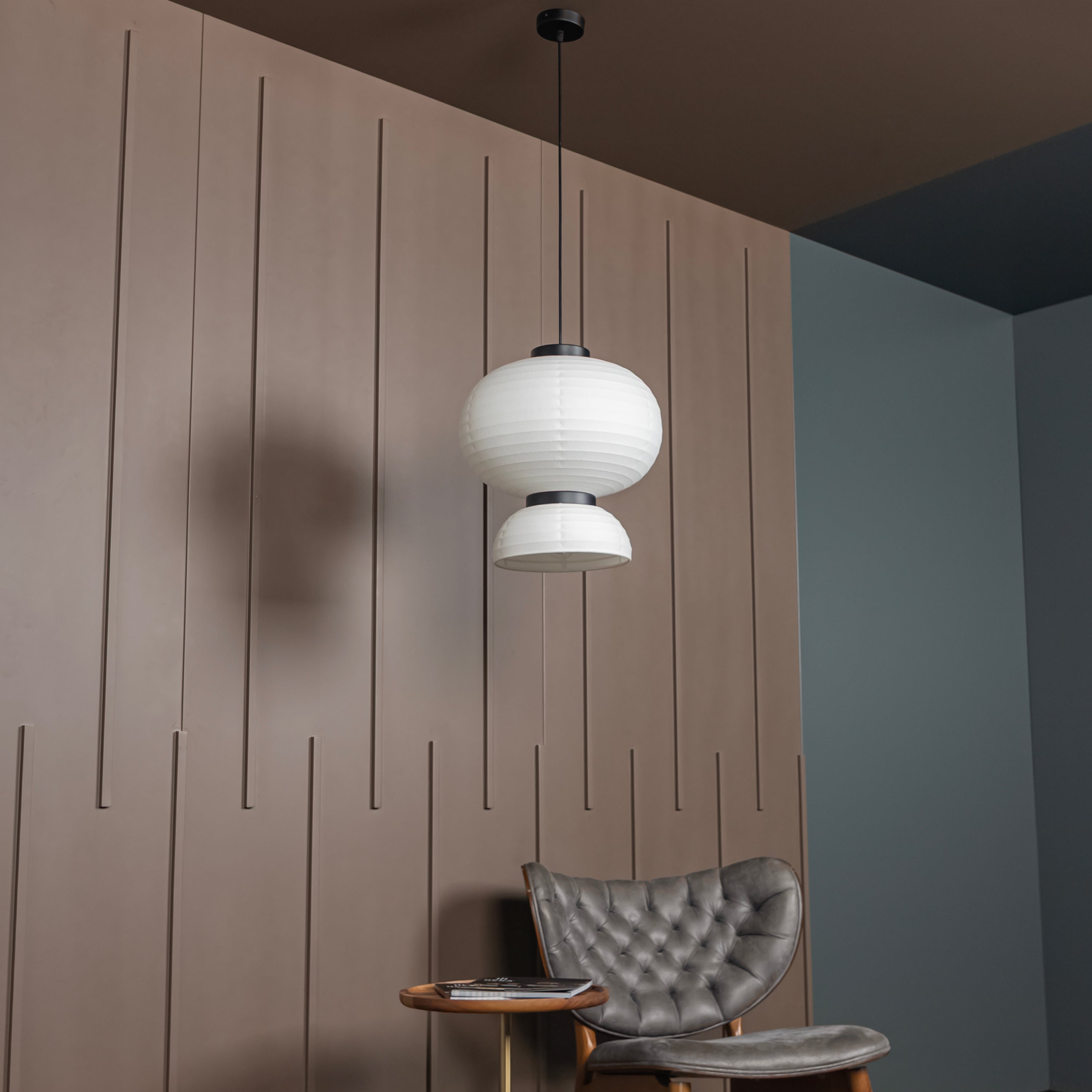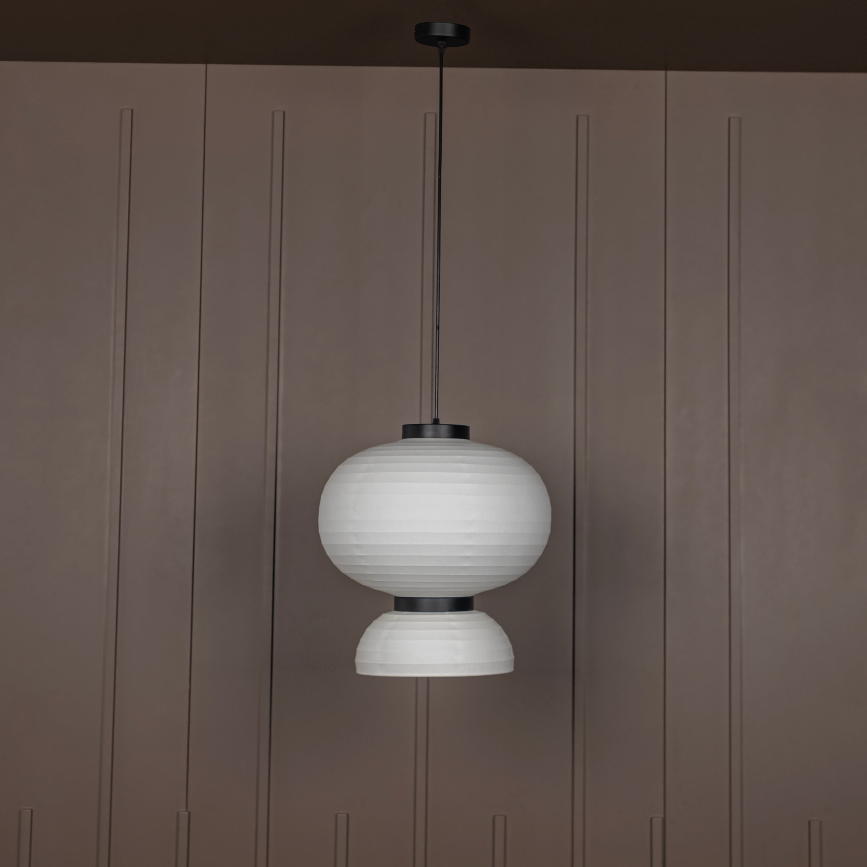 Solar Soft Touch Sarkıt Avize, modern beyaz polimer gövdesi ve siyah metal detaylarıyla mekâna minimalist ve yenilikçi bir dokunuş katar. 40 cm genişliğindeki boğumlu tasarımı, ışığın yumuşak geçişlerle dağılmasını sağlar.