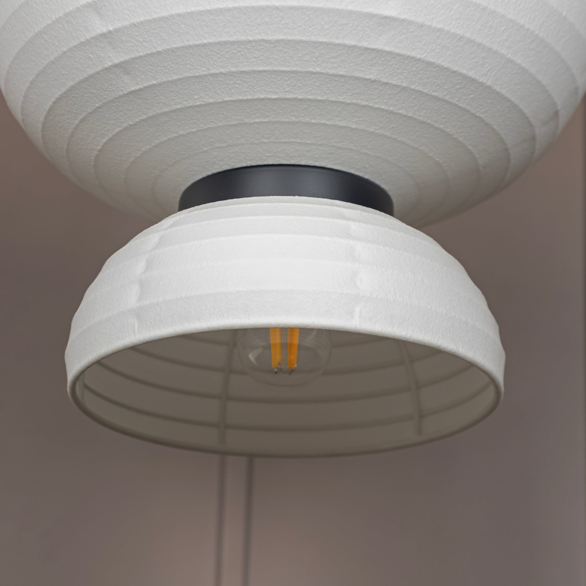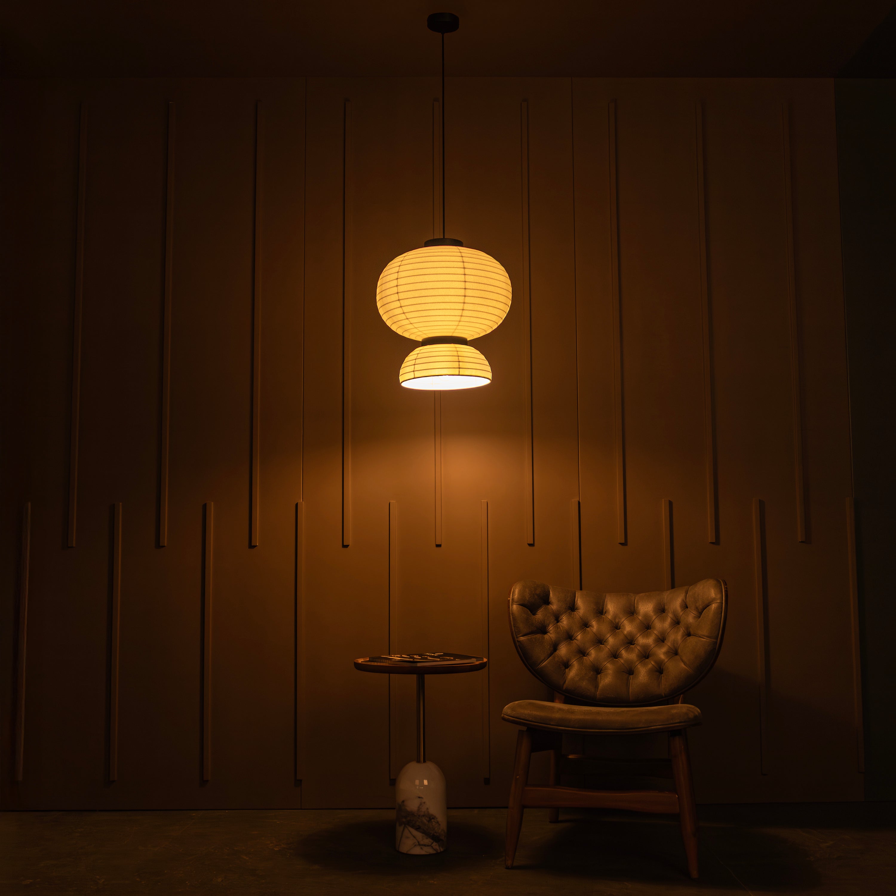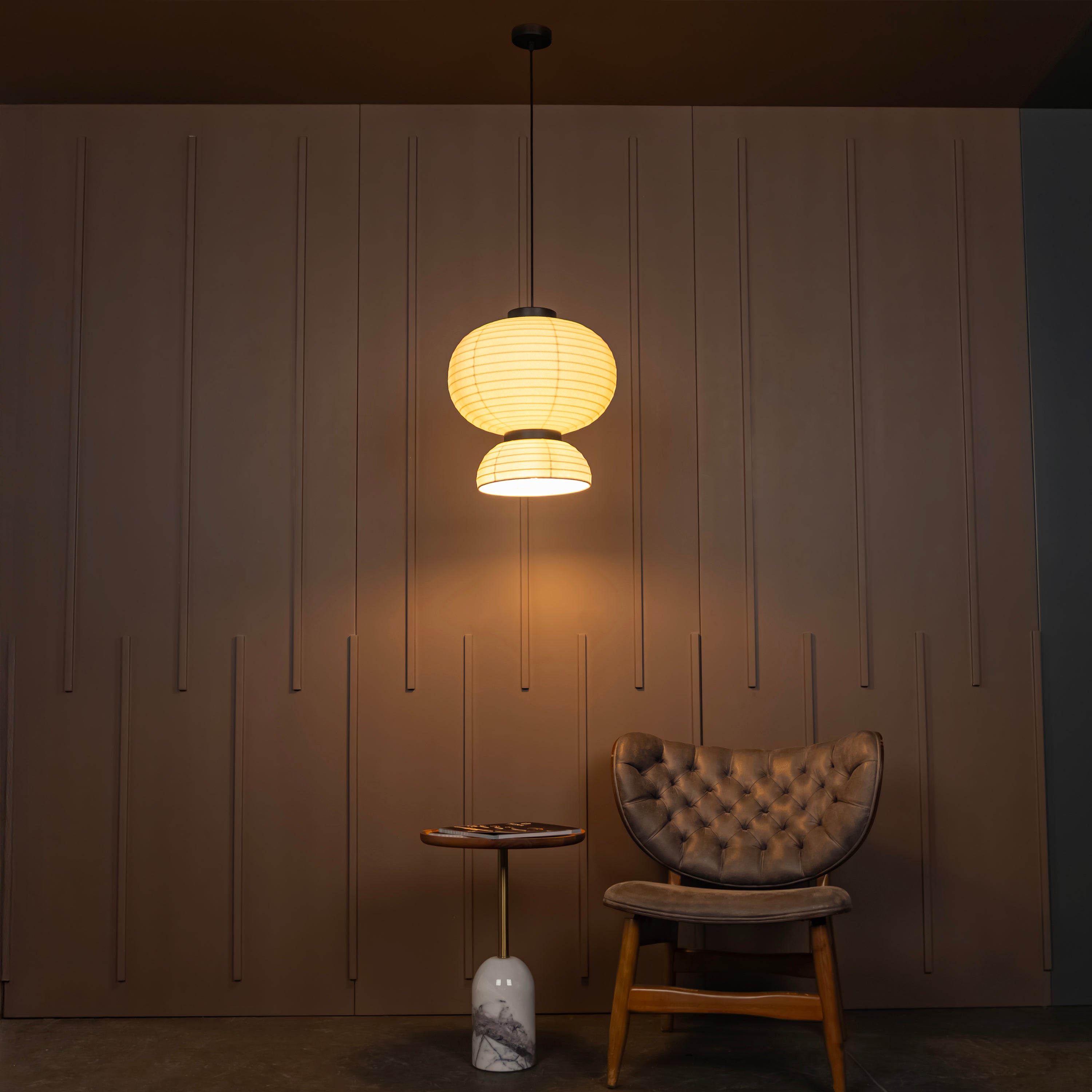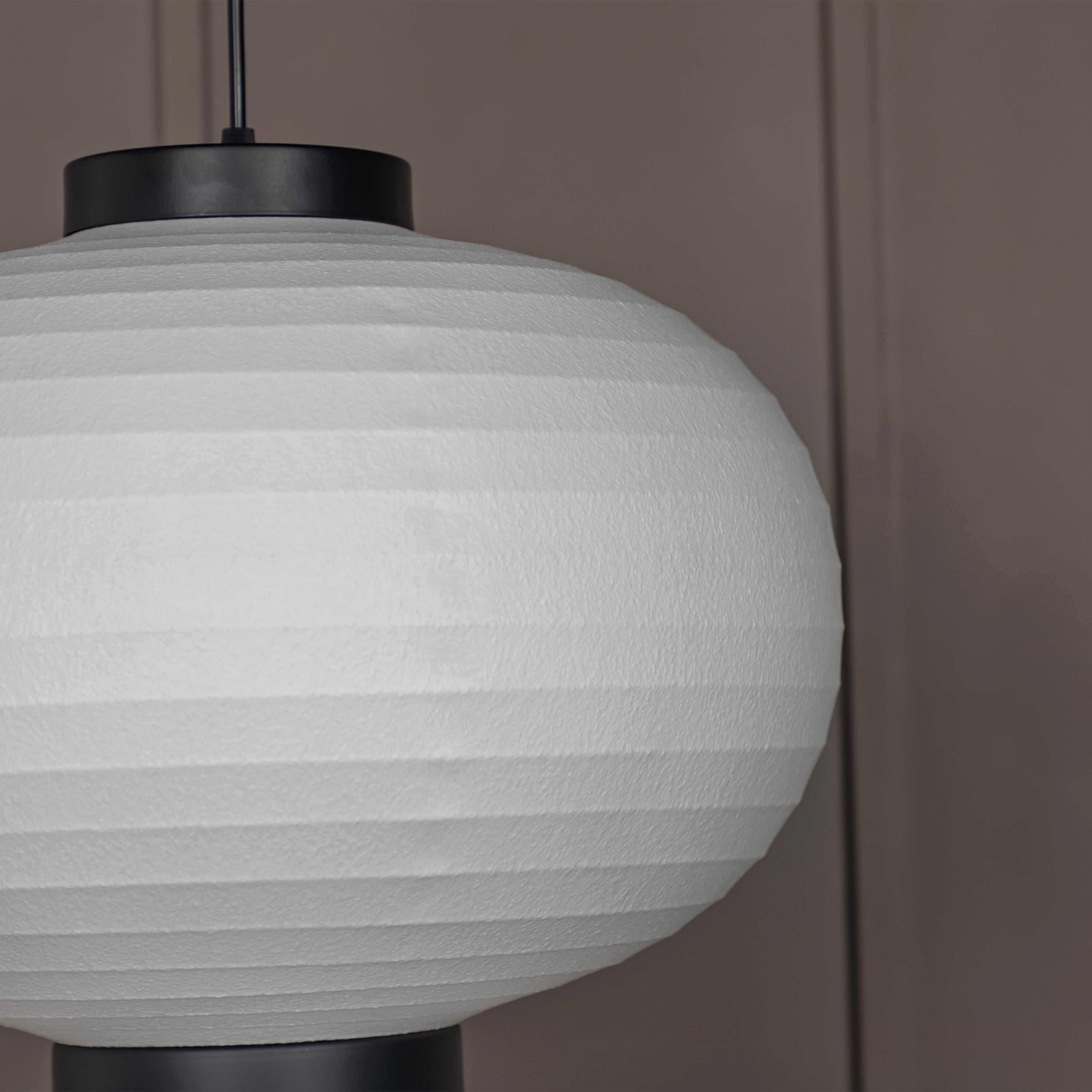 Solar Soft Touch Sarkıt Avize, modern beyaz polimer gövdesi ve siyah metal detaylarıyla mekâna minimalist ve yenilikçi bir dokunuş katar. 40 cm genişliğindeki boğumlu tasarımı, ışığın yumuşak geçişlerle dağılmasını sağlar.