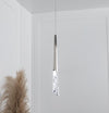 Surinam Avize, kristal efektli akrilik gövdesi ve nikel kaplama detaylarıyla zarif bir düşey vurgu yaratmak isteyenler için tasarlandı. Işığın akrilik yüzeyde kırılarak yayılması, yalnızca aydınlatma değil, aynı zamanda bir ışık oyununa dönüşür. İnce formu sayesinde mekânda sade ama etkili bir duruş sergiler.