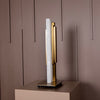 Gabon Masa Lambası, doğal mermer tabanı ve gold metal üst yapısıyla klasik şıklığı modern detaylarla buluşturur. Düz çizgileri ve güçlü malzeme vurgusu, özellikle ofislerde veya salon köşelerinde sofistike bir etki yaratır.