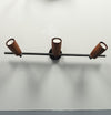 Angel Aplik, jatoba ahşap ve siyah metalin güçlü kontrastını sunar. Üçlü başlık yapısı, geniş alanlarda dengeli aydınlatma sağlar.