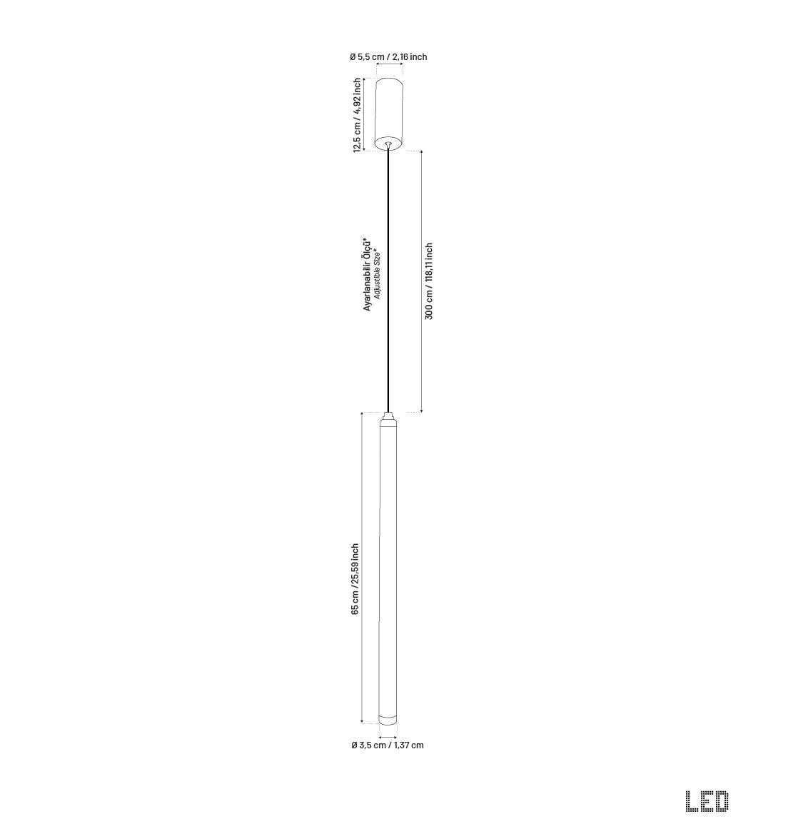 Ölçü: Uzunluk: 65 cm | Genişlik: 3,5 cm