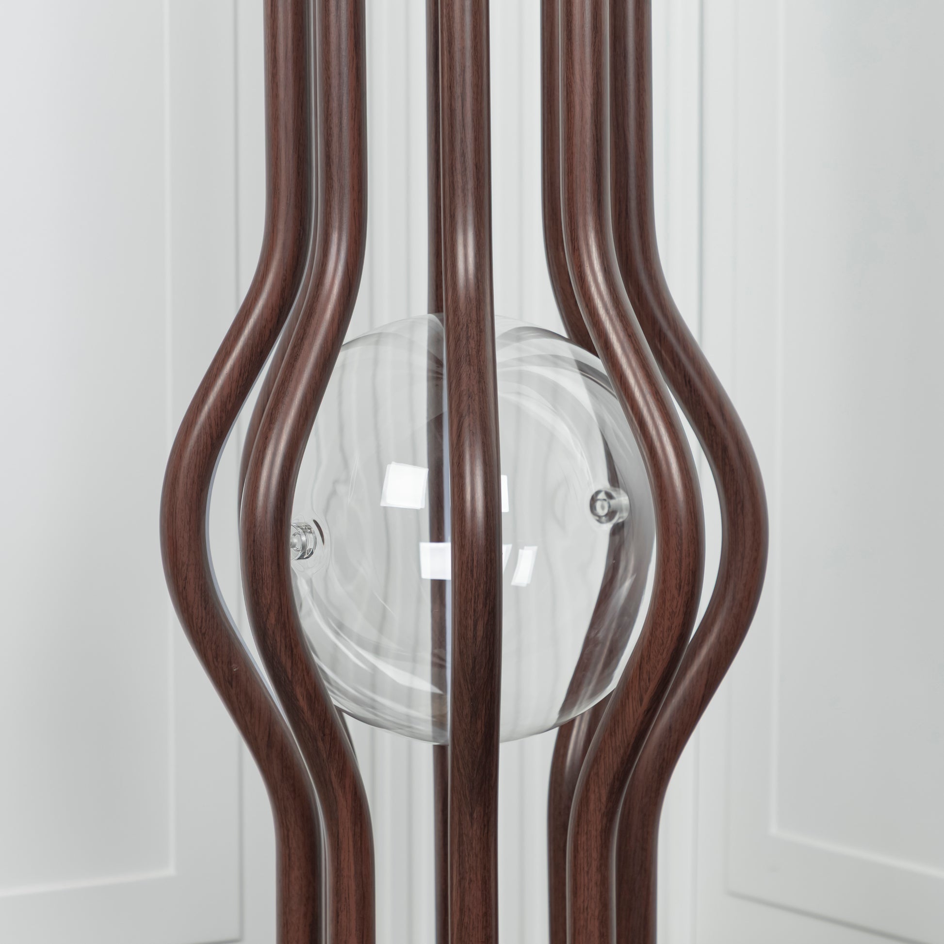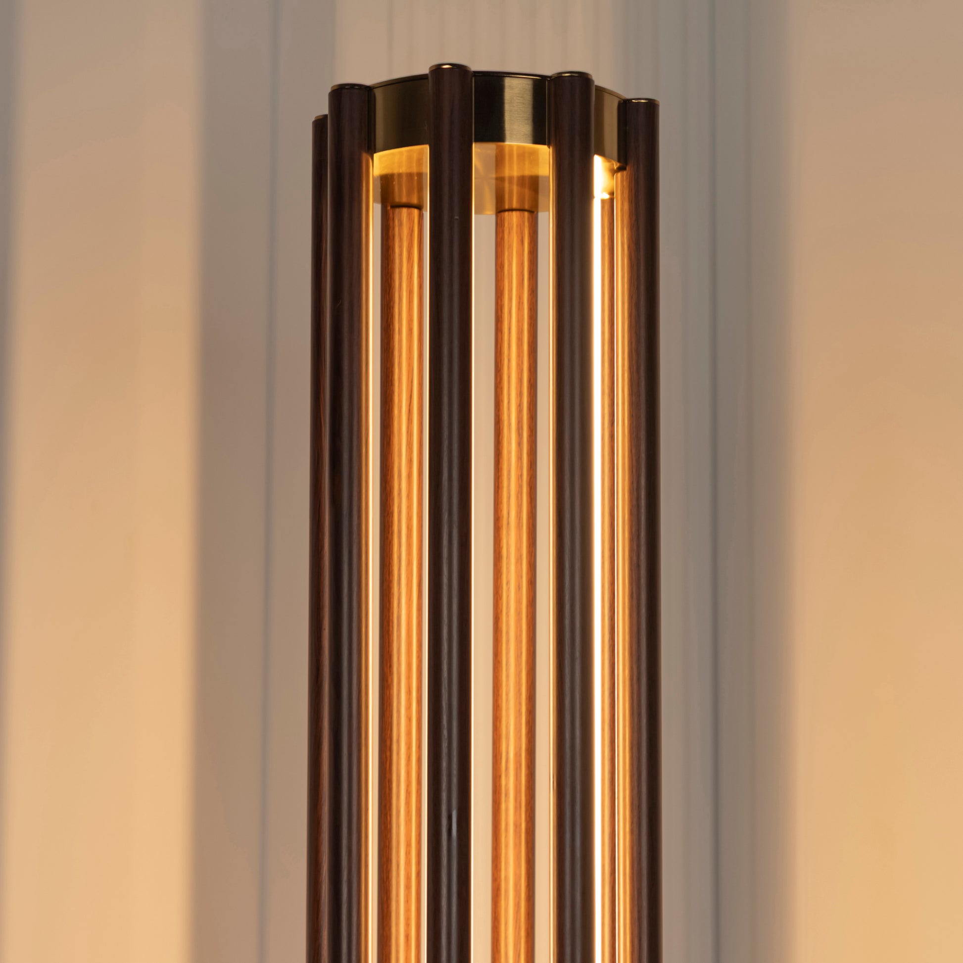 LED ışık, şeffaf cam içinden yumuşakça süzülerek, ahşabın dokusunu ön plana çıkarıyor. Naramata, ışığı yalnızca bir ihtiyaç olmaktan çıkararak dekoratif bir öğeye dönüştürüyor ve yaşam alanlarına doğal bir zarafet katıyor.