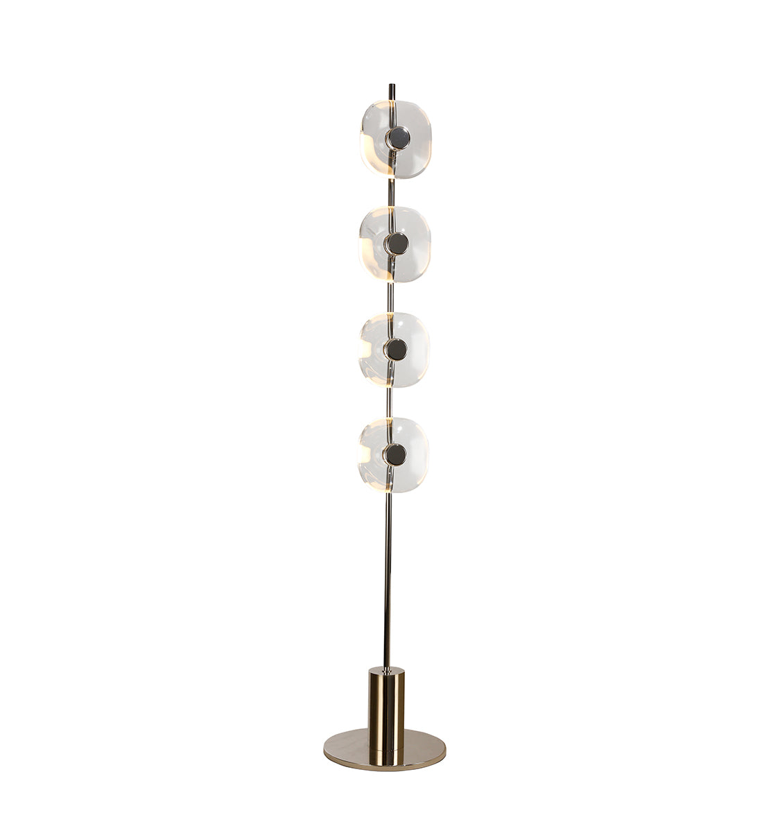 Üsküp Lambader, krom gövdesiyle modern şıklığın sembolü olurken, kristal cam detaylarıyla ışıltılı bir zarafet sunuyor. Dörtlü tasarımındaki dengeli duruş, mekâna hem lüks hem de çağdaş bir hava katıyor.