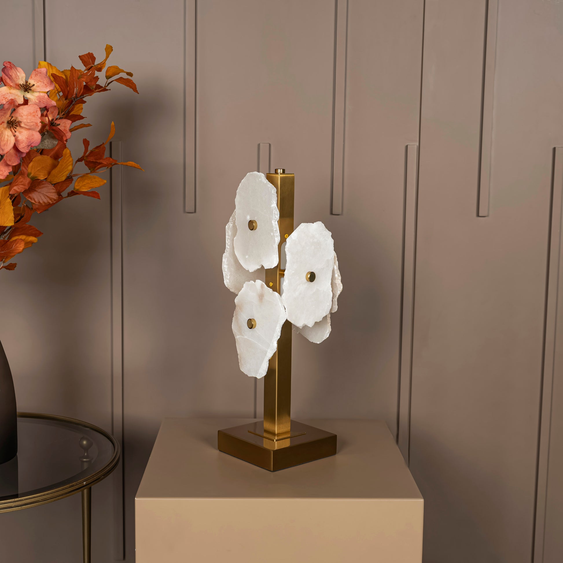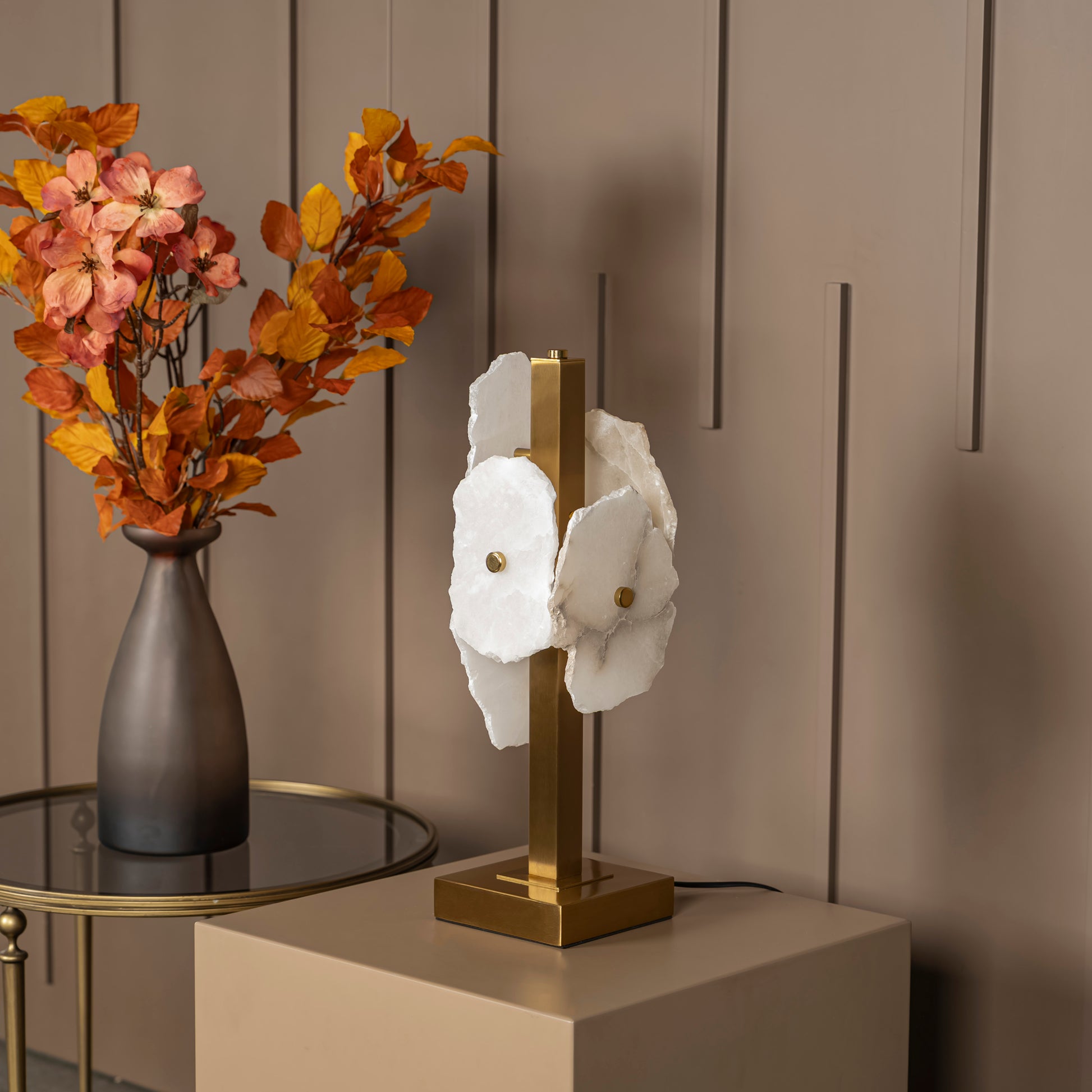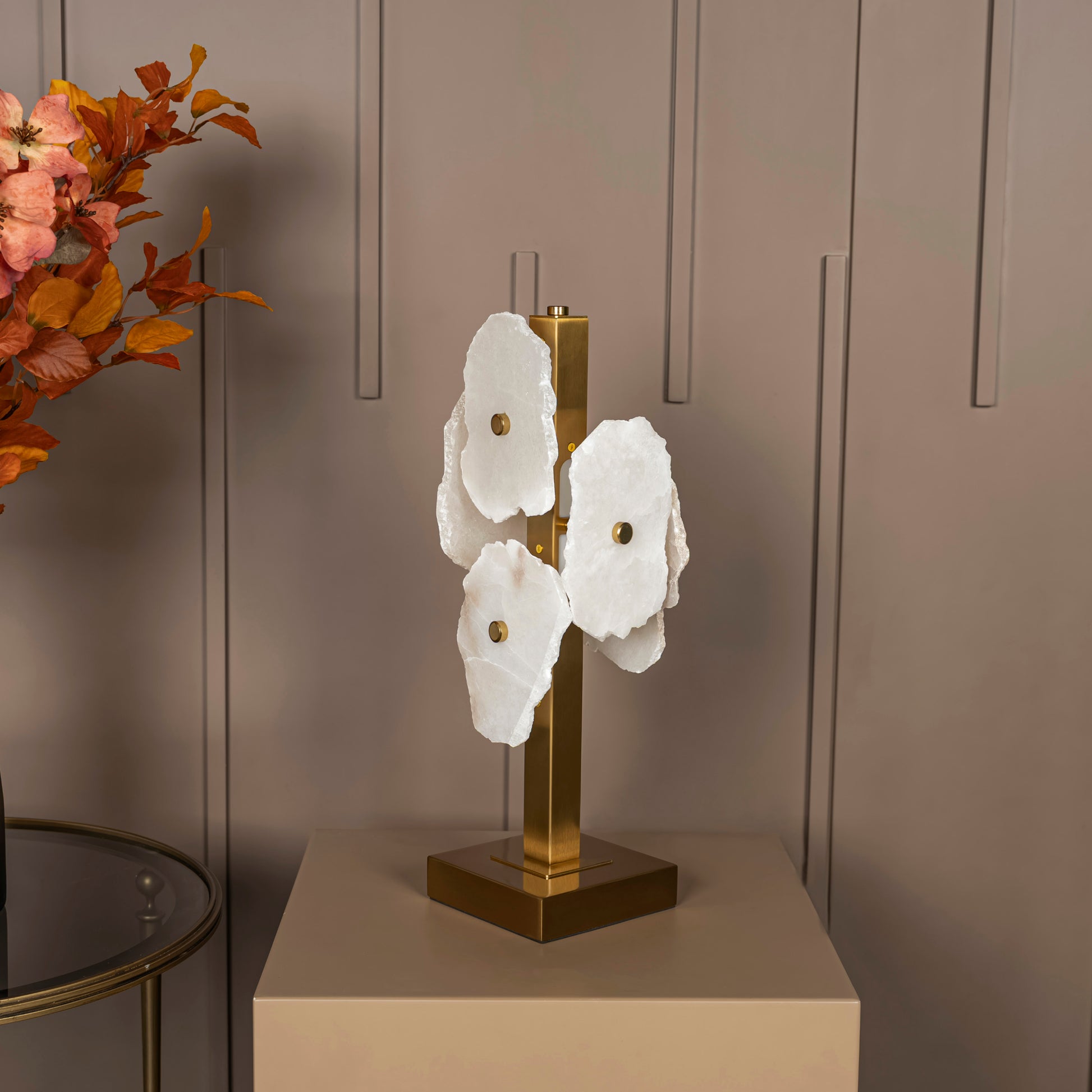 Anvers Mermer Masa Lambası, beyaz mermer detaylarıyla mekânlara doğallık kazandırırken, eskitme renkli metal gövdeyle lüks ve modern tasarımı bir araya getirir. Organik formlu üçlü mermer çiçek dizilimiyle özgün ve artistik çizgilere sahip olan Anvers, komodin ve çalışma masası gibi alanlarda göz alıcı bir tasarım öğesi olur.