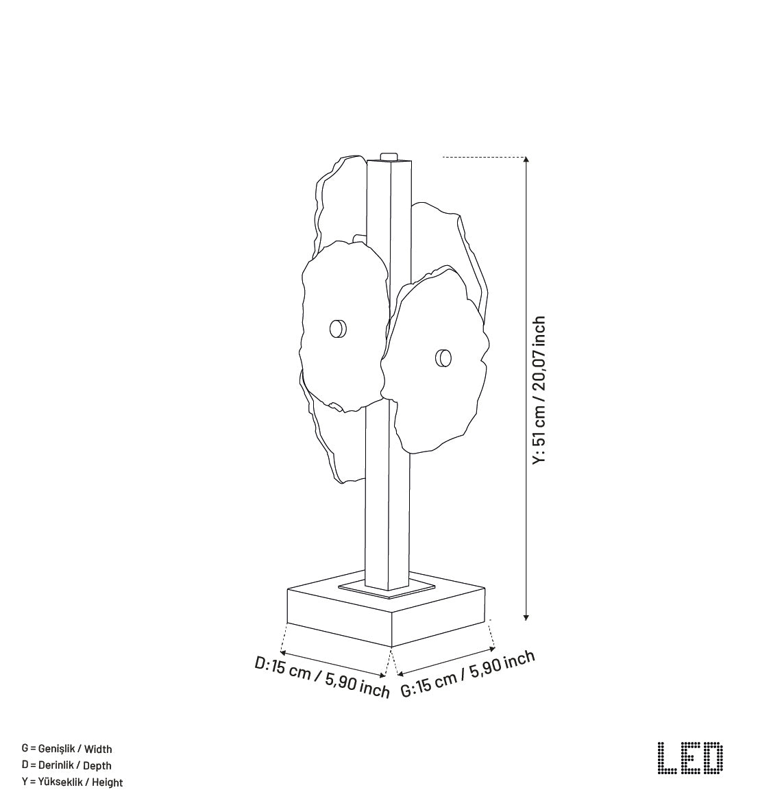 LED ışık kaynağı, enerji tasarrufu ve yumuşak masa aydınlatması avantajı sunar. Anvers, özellikle çağdaş yaşam alanlarında sofistike ve zarif bir atmosfer yaratır.