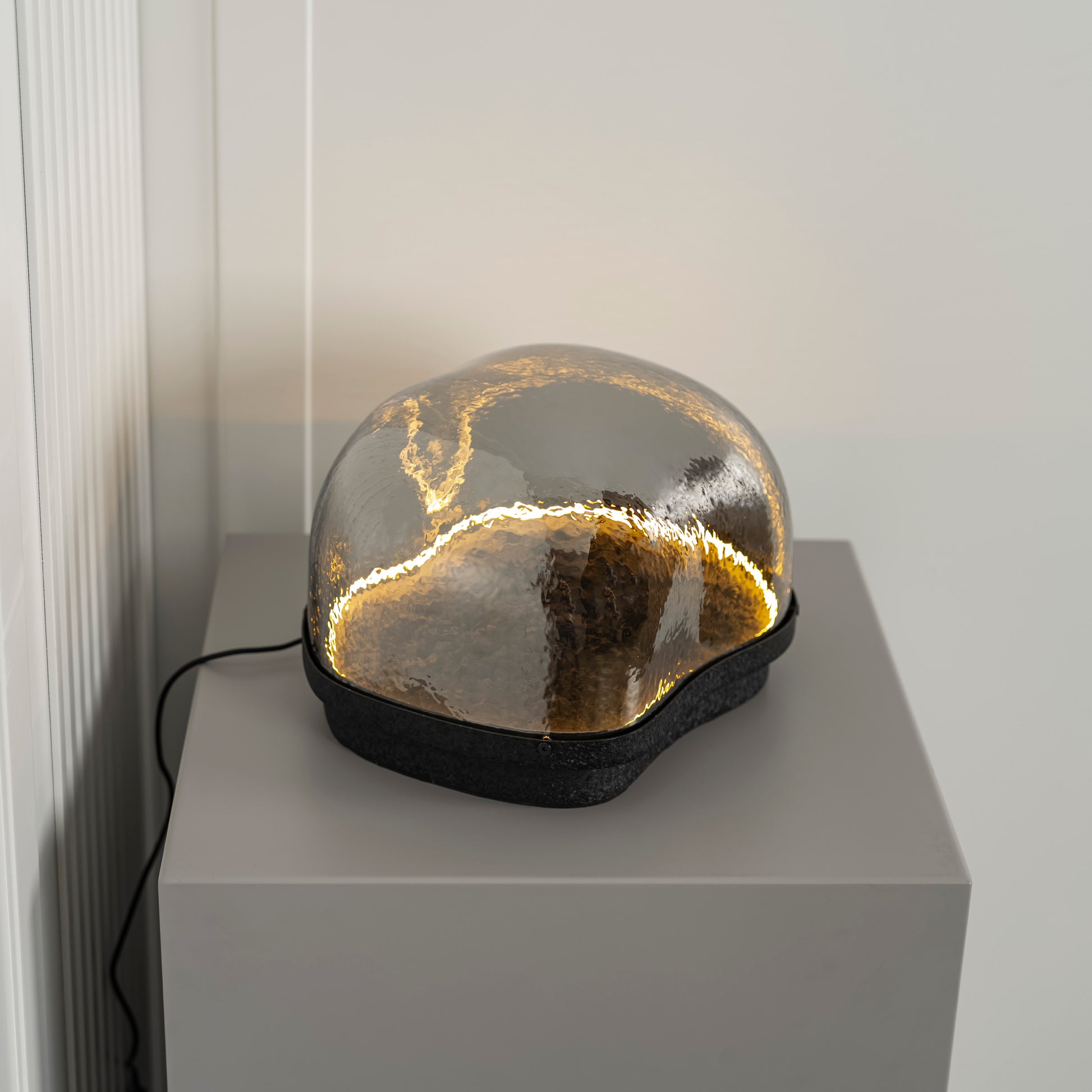 Gambia Füme Masa Lambası, füme cam gövdesiyle mekânlara derinlik kazandırırken, siyah metal detaylarla modern ve minimalist tasarımı bir araya getirir. Özgün çizgilere sahip olan Gambia, komodin ve çalışma masası gibi alanlarda göz alıcı bir tasarım öğesi olur.