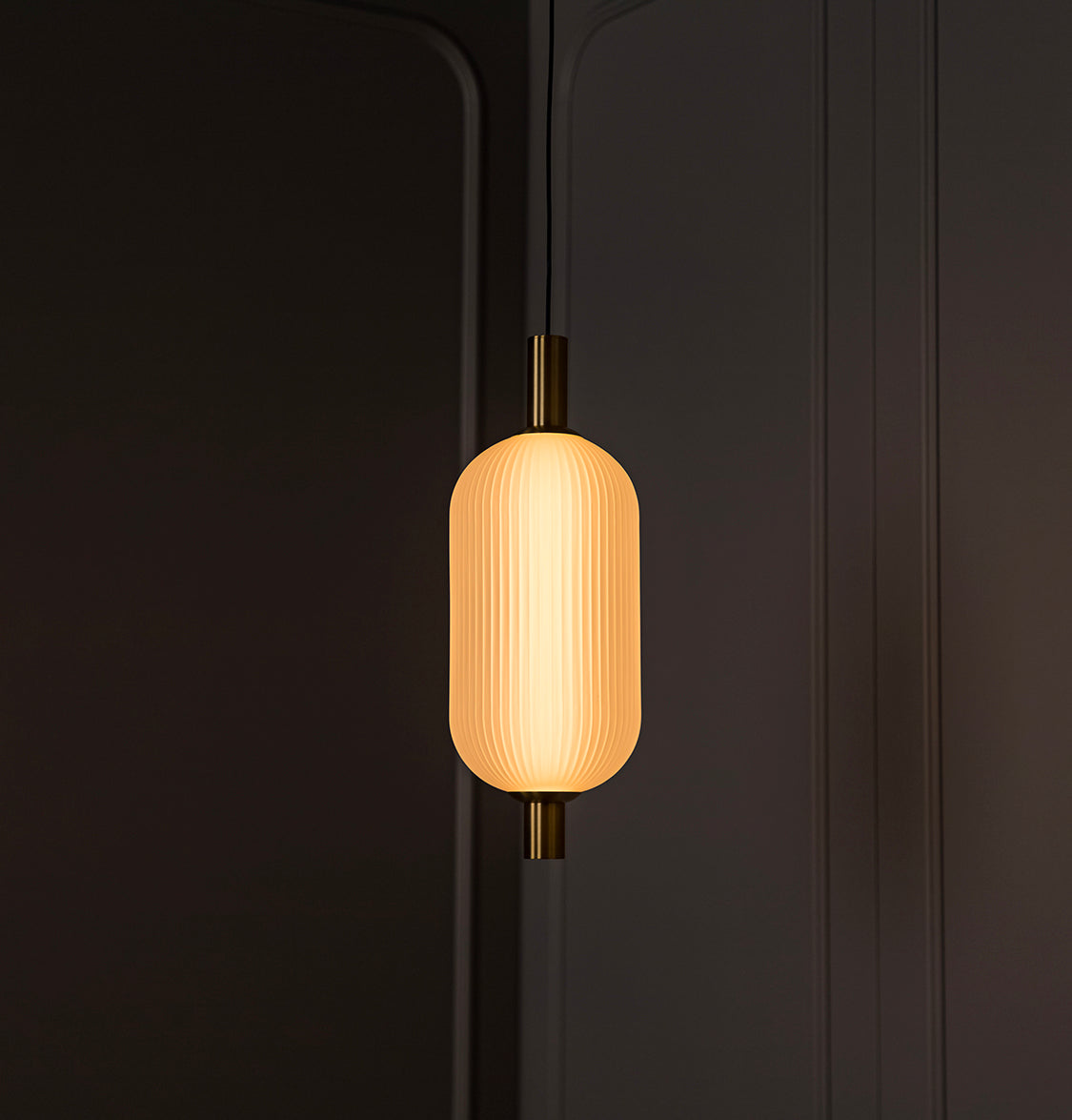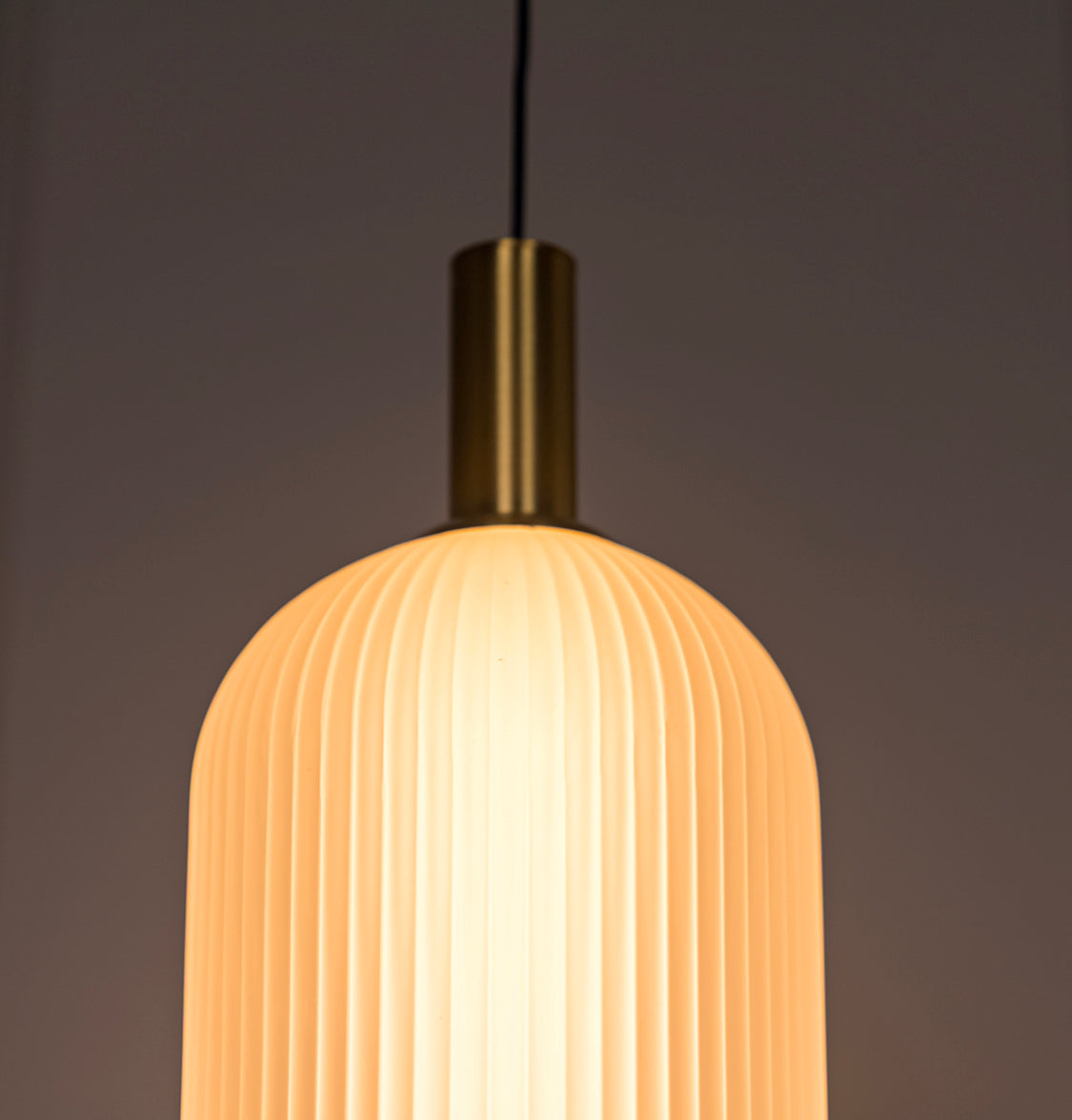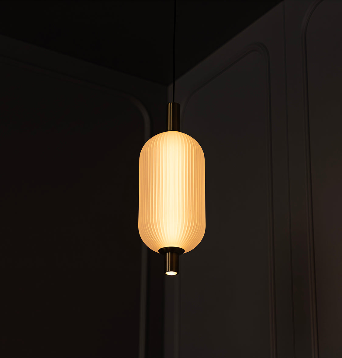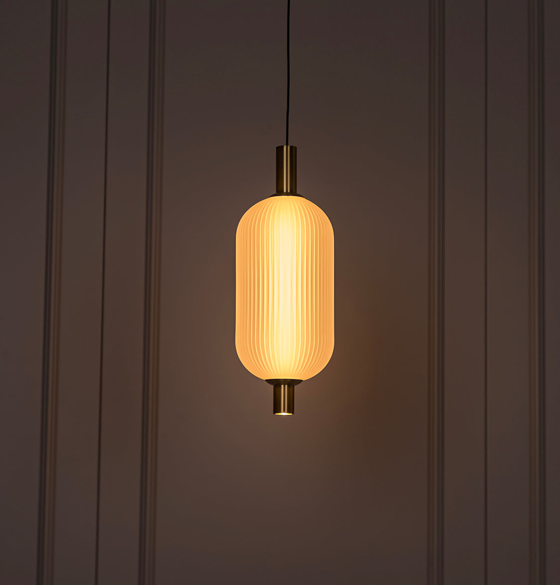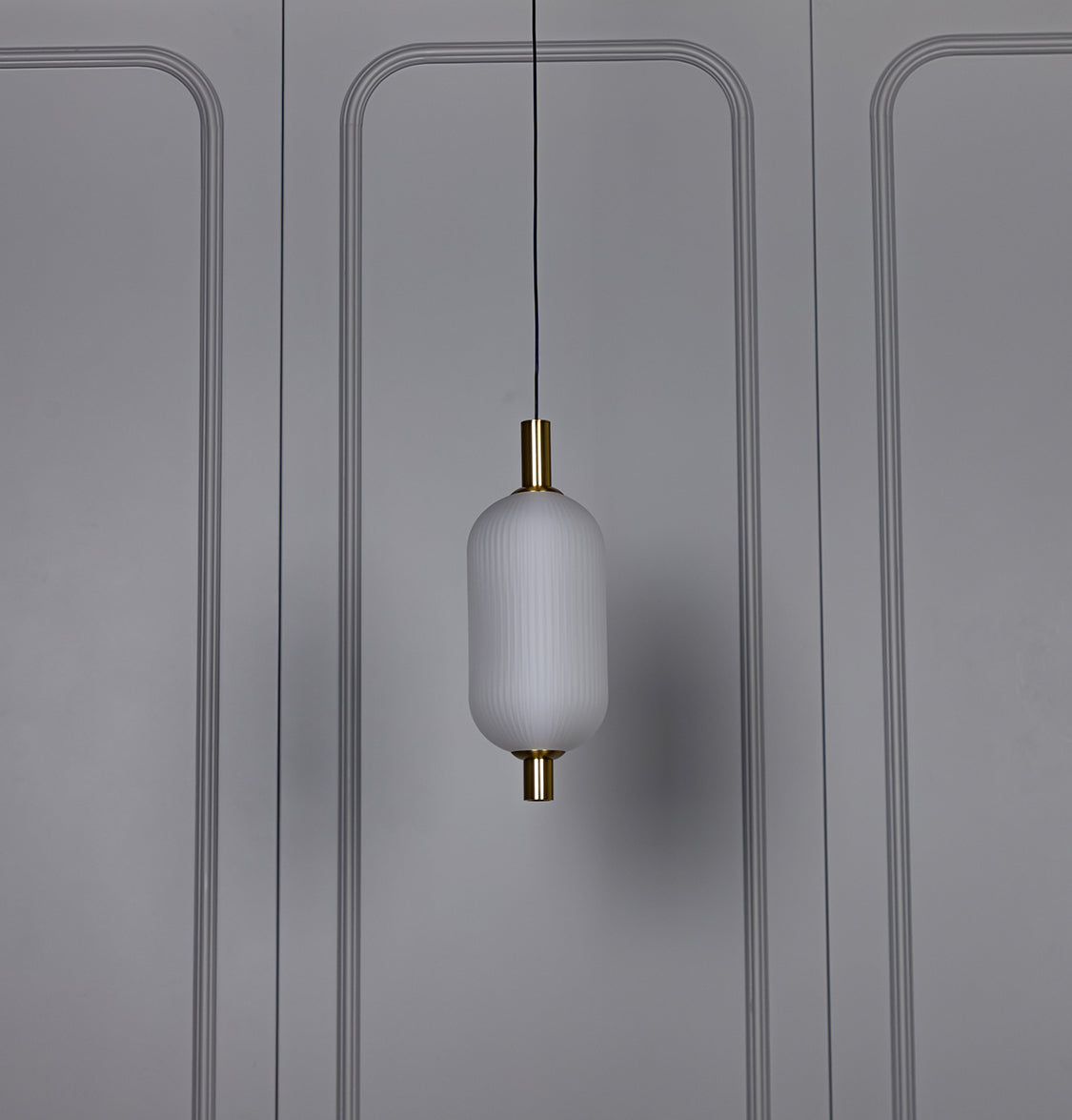 Tera Tekli Sarkıt, zarif opal cam gövdesi ve eskitme detaylı metal aksamıyla, bulunduğu ortama modern ama nostaljik bir sıcaklık katar. Dikey silindirik formda tasarlanan opal cam, ışığın yüzeyde yumuşayarak yayılmasını sağlar; hem fonksiyonel hem estetik bir kullanım sunar.