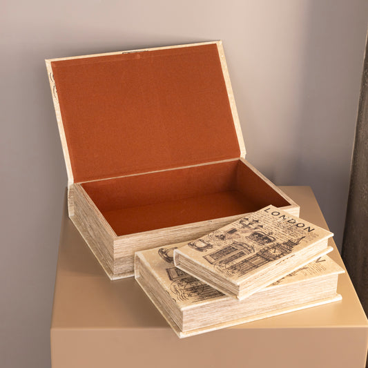 Londra Üçlü Krem Rengi Kitap Kutusu