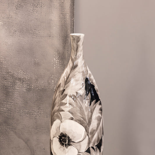 Siyah Çiçek Desenli Küçük Vazo 22X87 cm