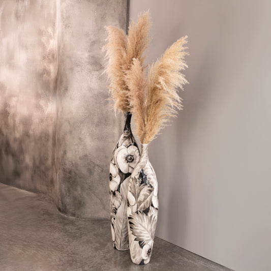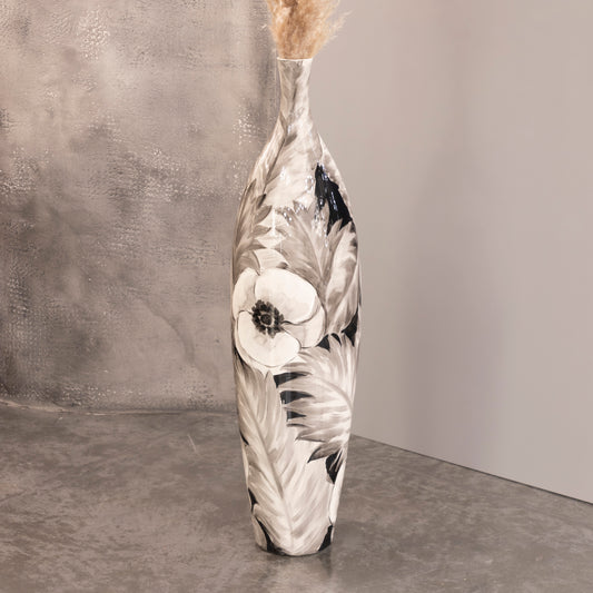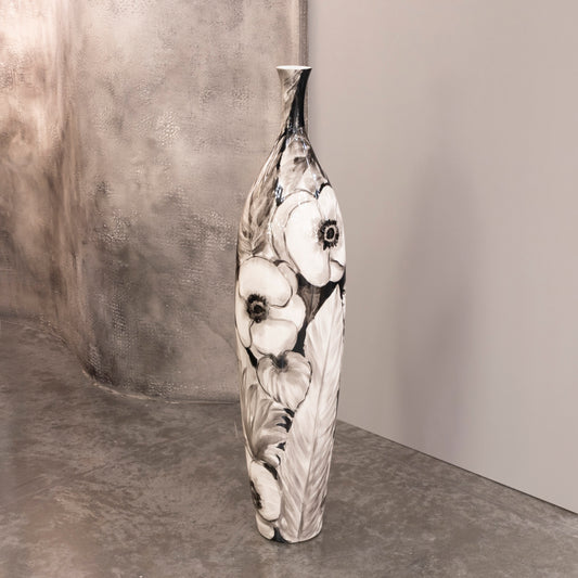 Siyah Çiçek Desenli Büyük Vazo 24,5X108 cm