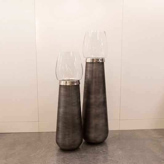 Nikel Gri Cam Büyük Vazo 122 Cm