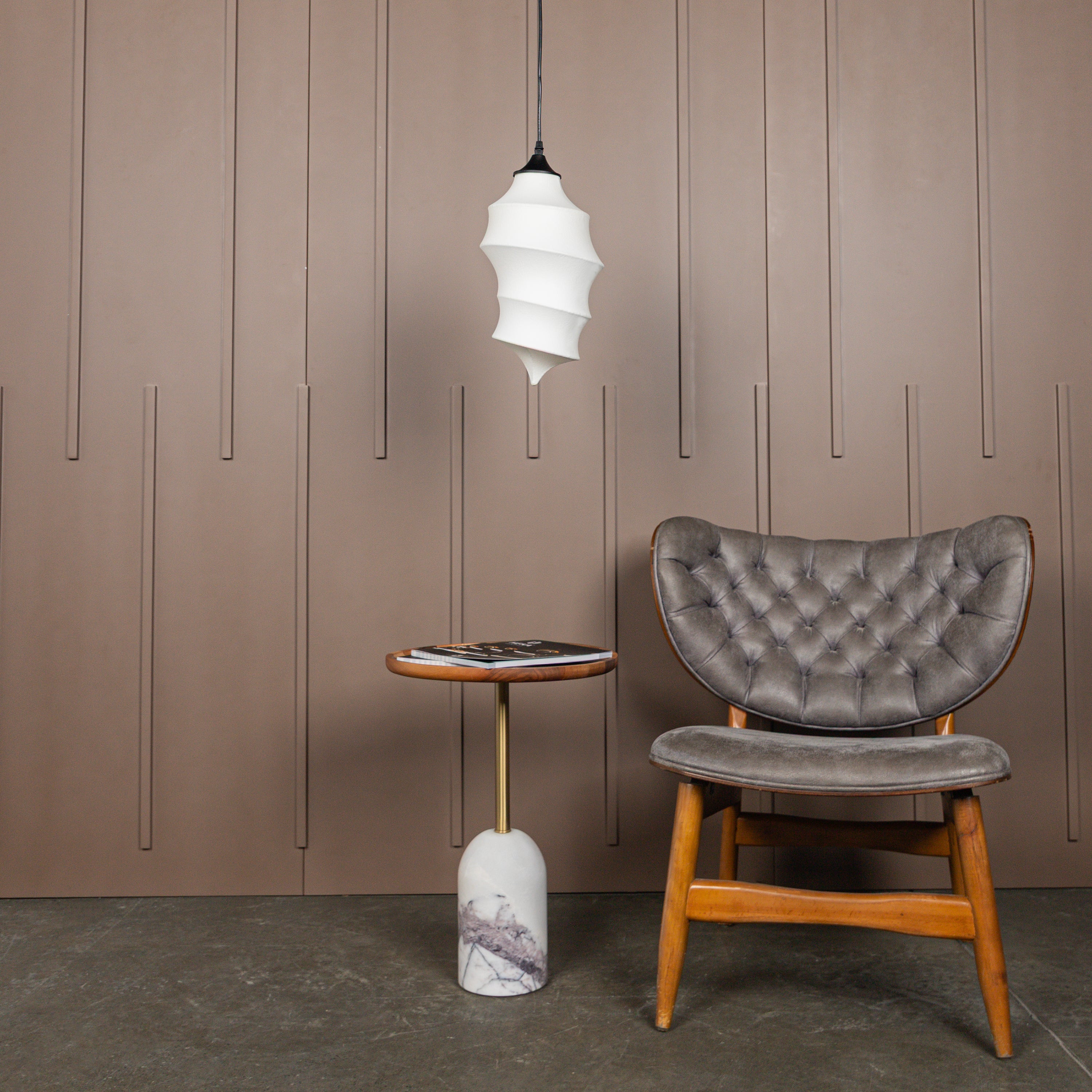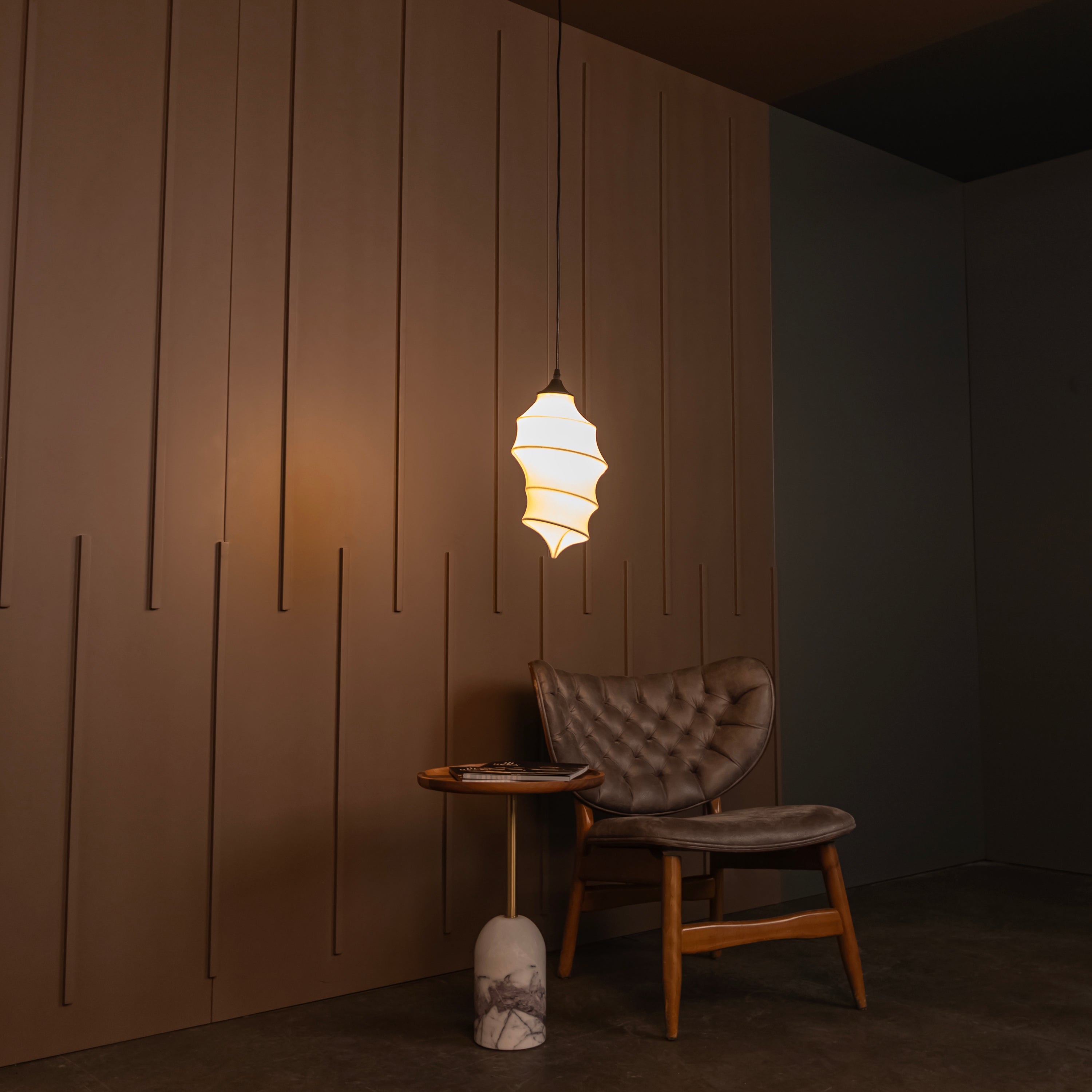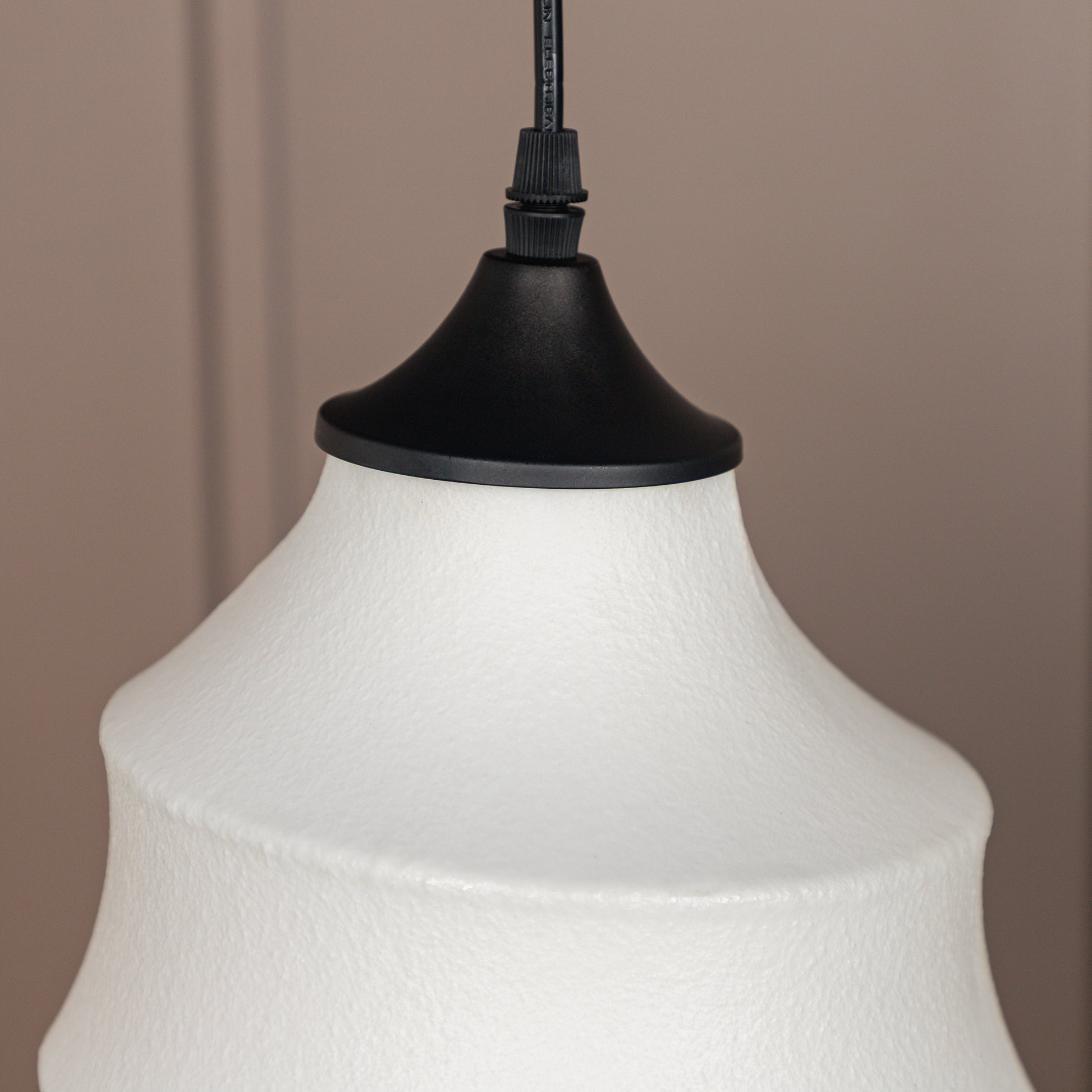 Ceres Sarkıt Avize, beyaz polimerin modern dokusunu siyah metal detaylarıyla sofistike bir dengeye taşır. Kompakt formu, özellikle küçük alanlarda ışığın zarifçe yayılmasını sağlar.