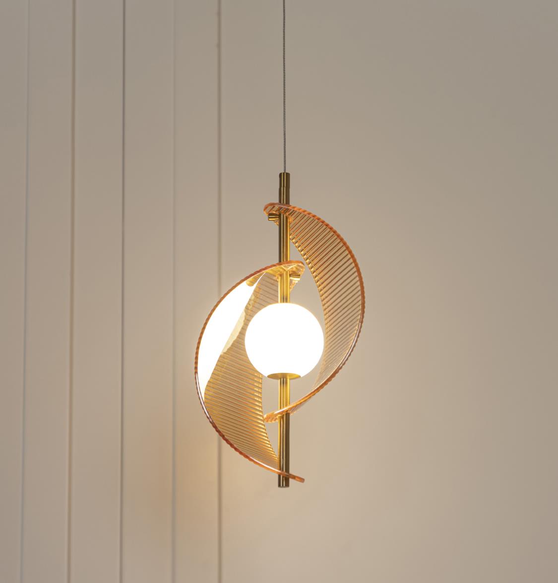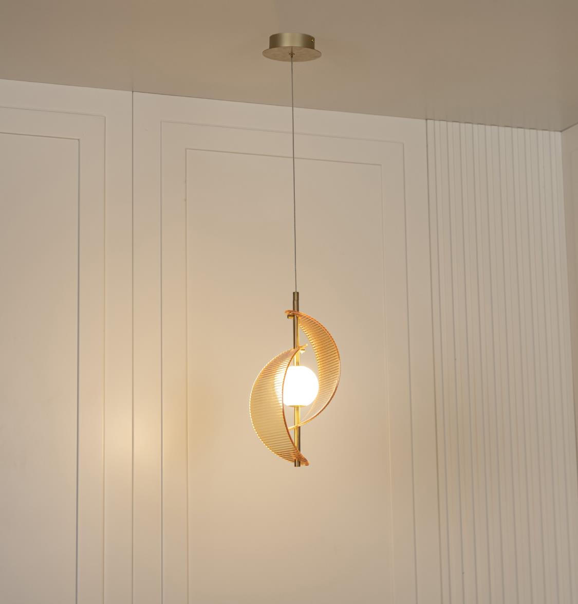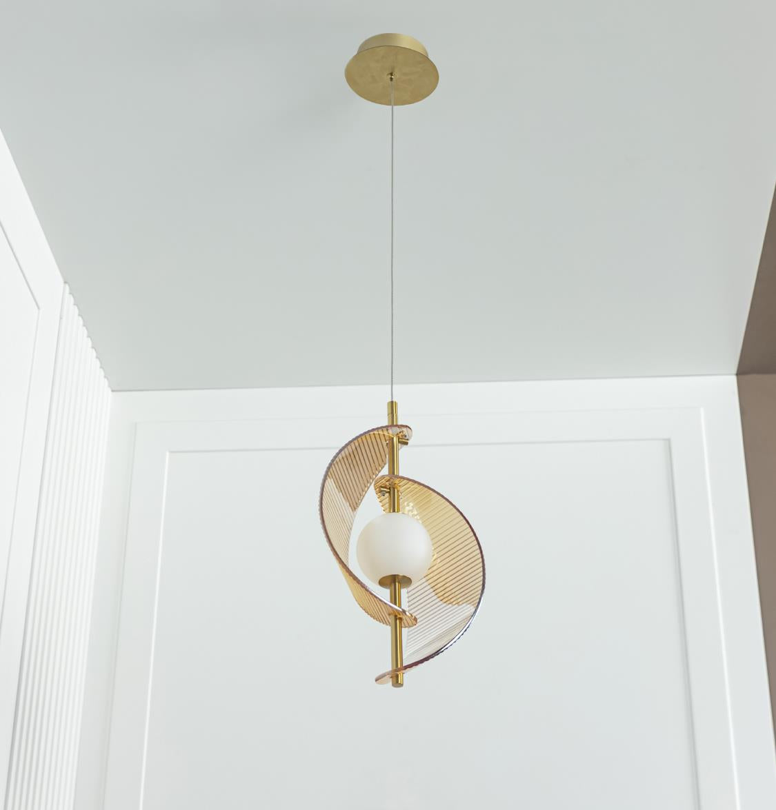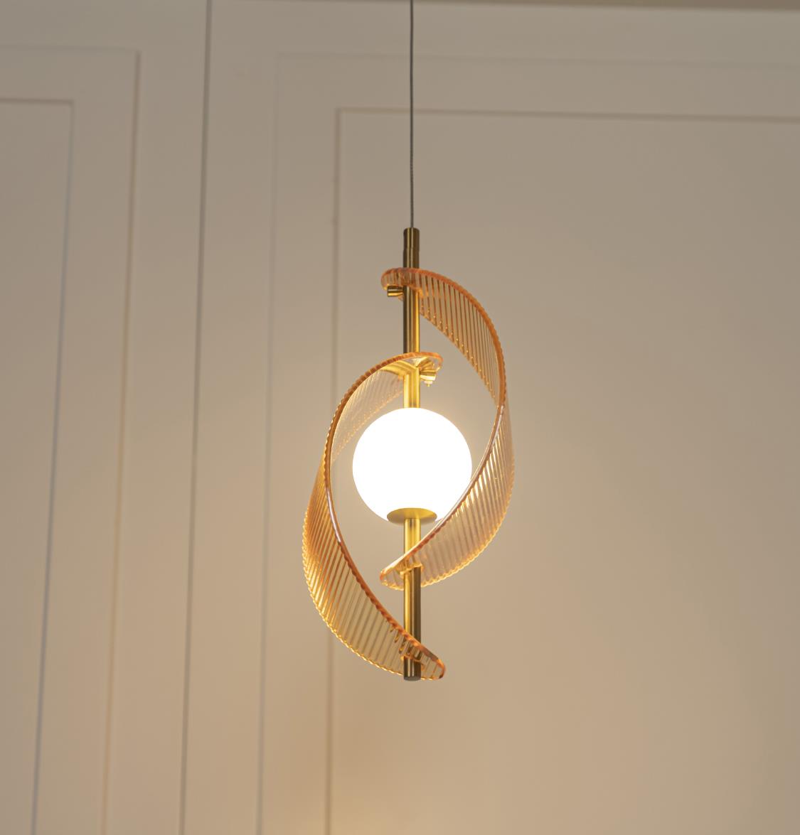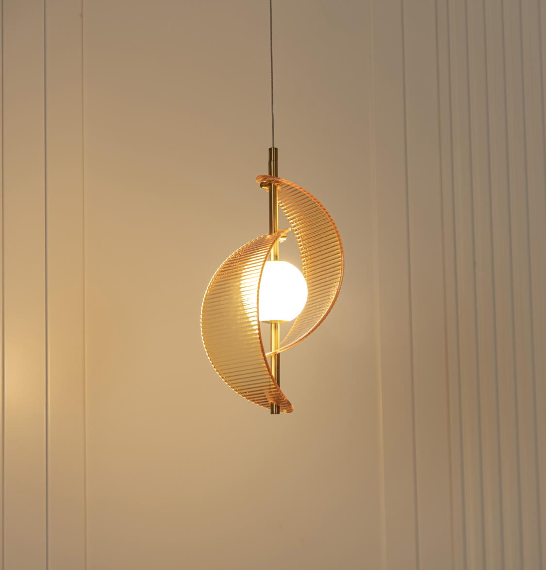 Onda Sarkıt, mekâna modern bir zarafet ve akıcı bir tasarım dili kazandırmak için oluşturuldu. Dönüşümlü formdaki bal cam yüzeyler, ışığın etrafında dans eden kıvrımlı bir siluet yaratır ve ortamı sofistike bir atmosferle buluşturur. Altın tonundaki metal taşıyıcı, ürünün heykelsi çizgilerini tamamlayarak dekorasyona benzersiz bir değer katar.