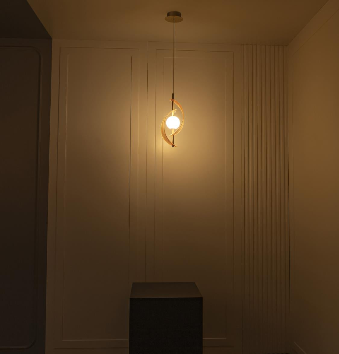 LED ışık kaynağının yumuşak, homojen ışığı mat küre formunun içinden geçerek mekâna dingin bir aydınlık yayar. Işık ve form arasındaki uyum, Onda Sarkıt’ı yalnızca bir aydınlatma elemanı olmaktan çıkarıp, modern yaşam alanlarının odak noktası hâline getirir.