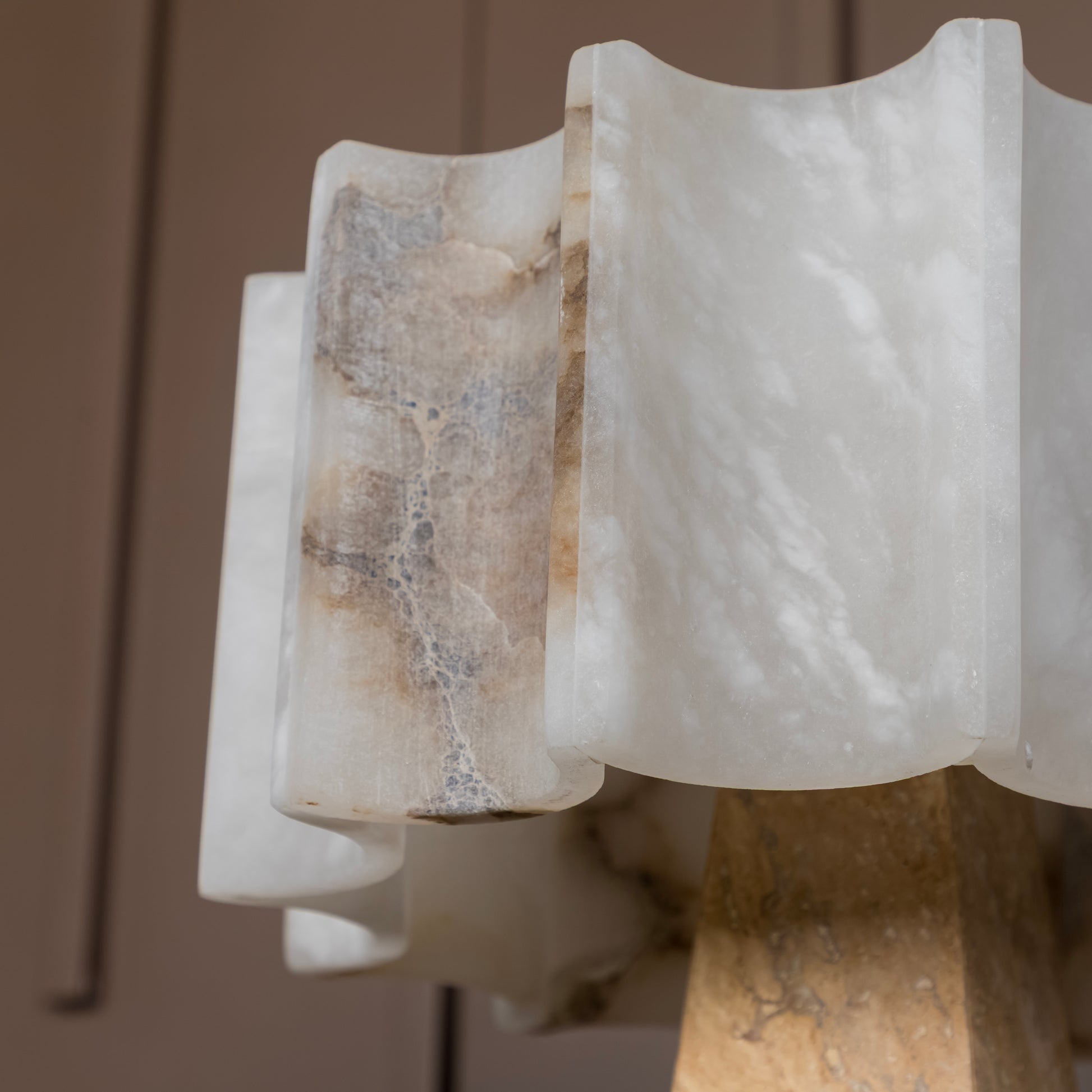 Tüm elektrik bağlantıları yapılmış ve montaja gerek duymadan kullanılabilen Abha, travertenin doğal şıklığını sevenler için özel bir tamamlayıcıdır.
