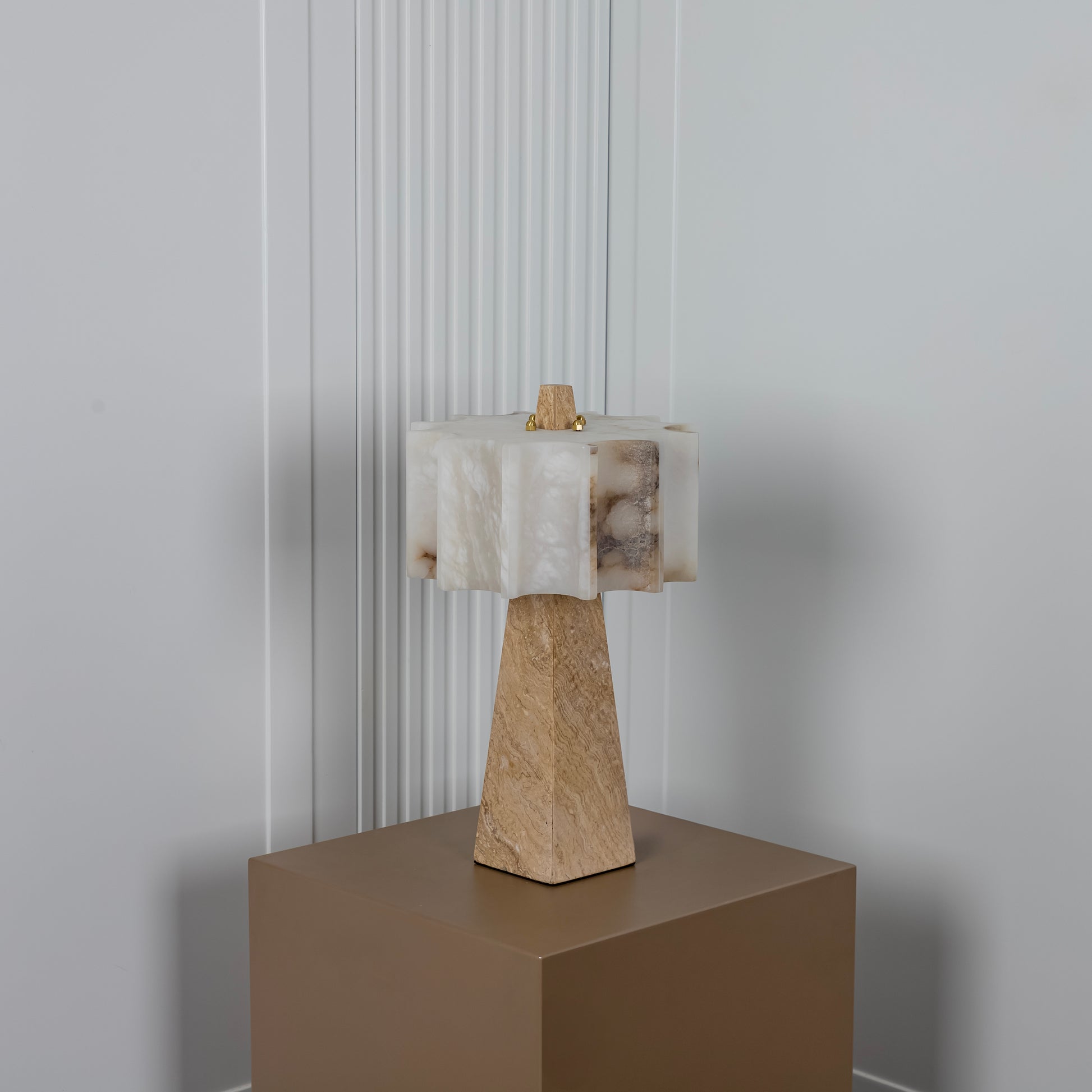 G9 ampul ile çalışan yapısı, masa veya raf üstlerinde dengeli bir ışık sunar. Traverten taşın içinden süzülen aydınlatma, özellikle loş alanlarda huzurlu bir ambiyans oluşturur. Yalın formu sayesinde hem klasik hem de çağdaş dekorasyonlara kolayca uyum sağlar.