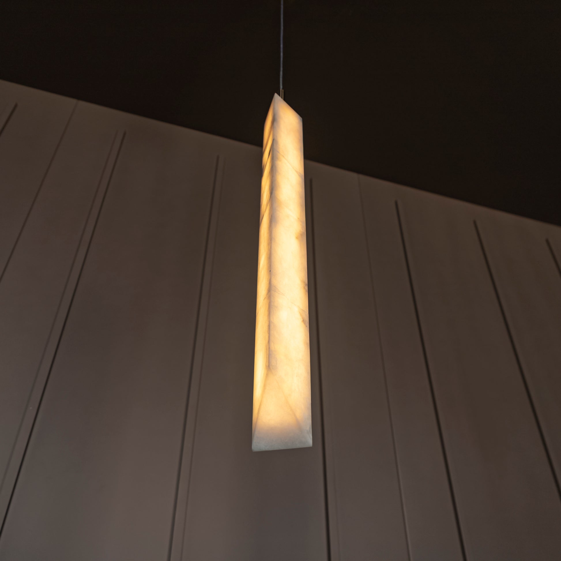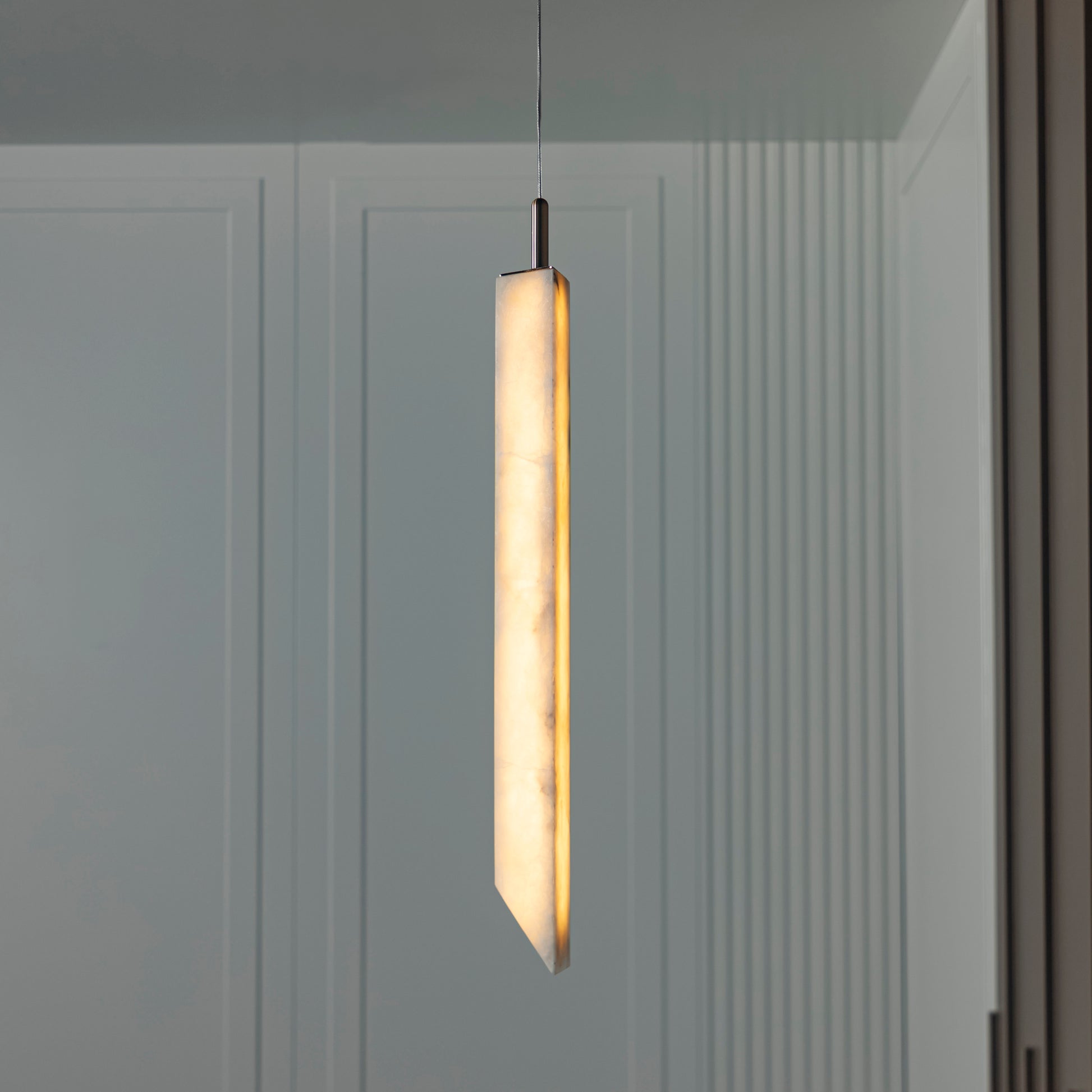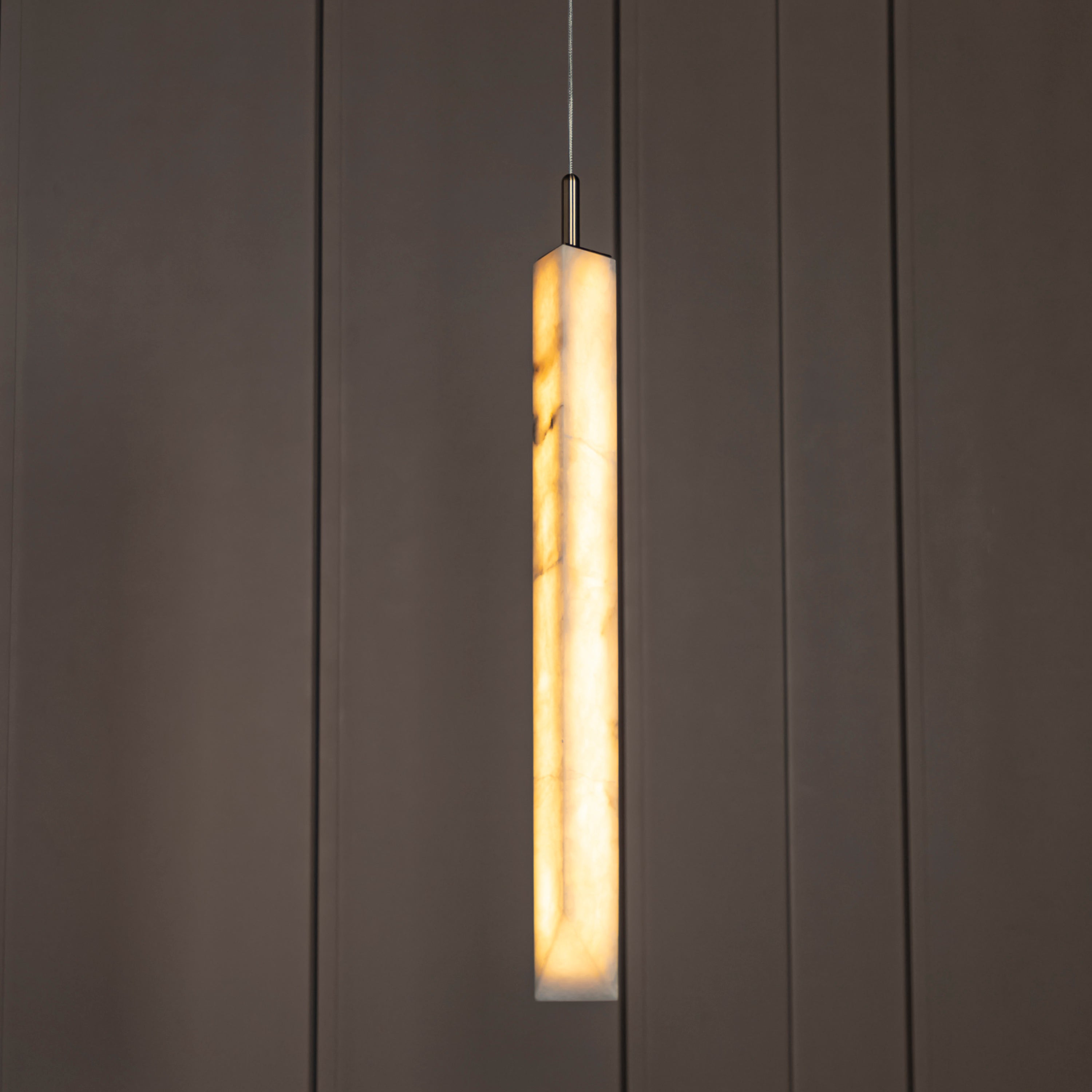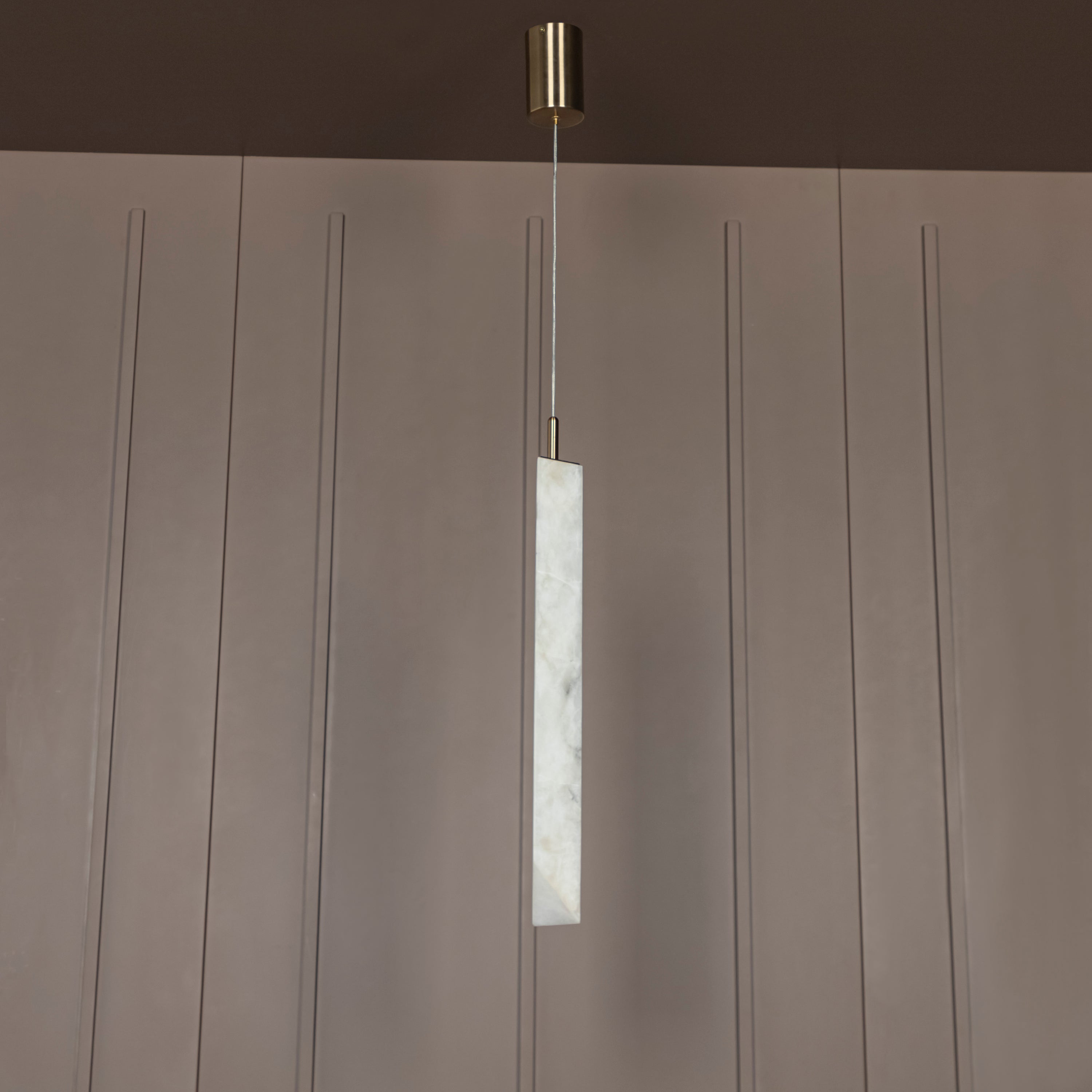 Aron Mermer Sarkıt, doğal beyaz mermer gövdesiyle mekânlara lüks ve minimalist bir dokunuş kazandırırken, eskitme metal detaylarla zarif ve çağdaş tasarımı bir araya getirir. Uzun silindirik mermer formuyla özgün ve modern çizgilere sahip olan Aron, yemek masası ve mutfak adası gibi alanlarda göz alıcı bir aydınlatma öğesi olur.