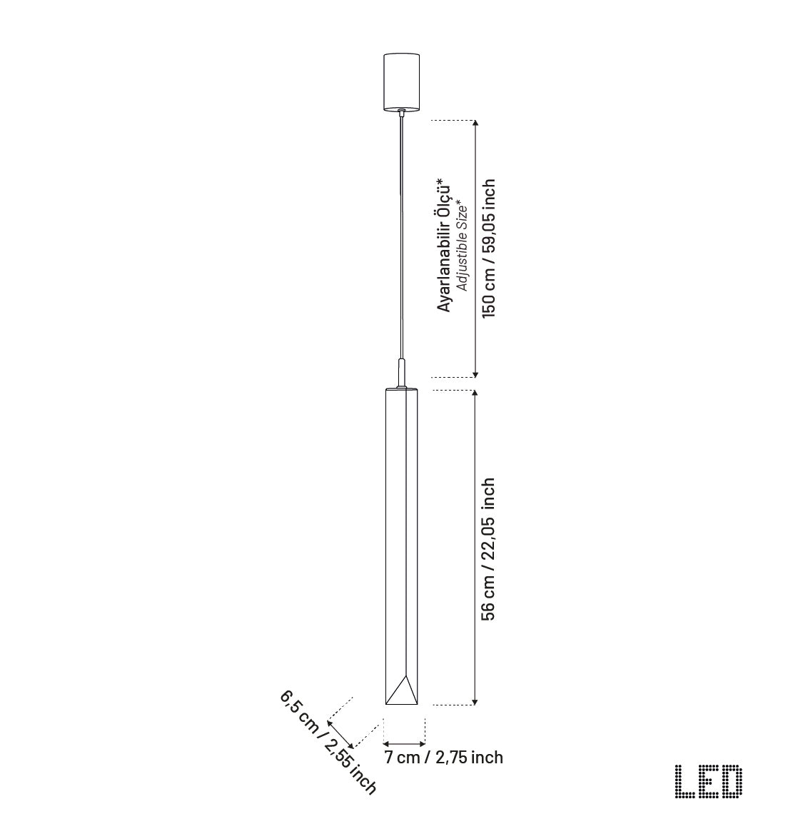 LED ışık kaynağı, enerji tasarrufu ve atmosferik sarkıt aydınlatması avantajı sunar. Aron, özellikle lüks ve minimalist yaşam alanlarında sıcak ve sofistike bir atmosfer yaratır.