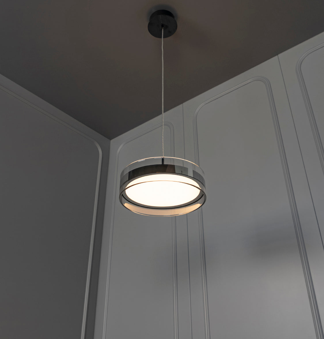 LED teknolojisiyle donatılan bu avize, enerji verimliliği sağlarken göz yormayan, dengeli bir ışık yayar. Platin renk paslanmaz gövde uzun ömürlü kullanım imkânı sunarken, şeffaf cam formuyla bulunduğu alanı daha geniş ve ferah gösterir.