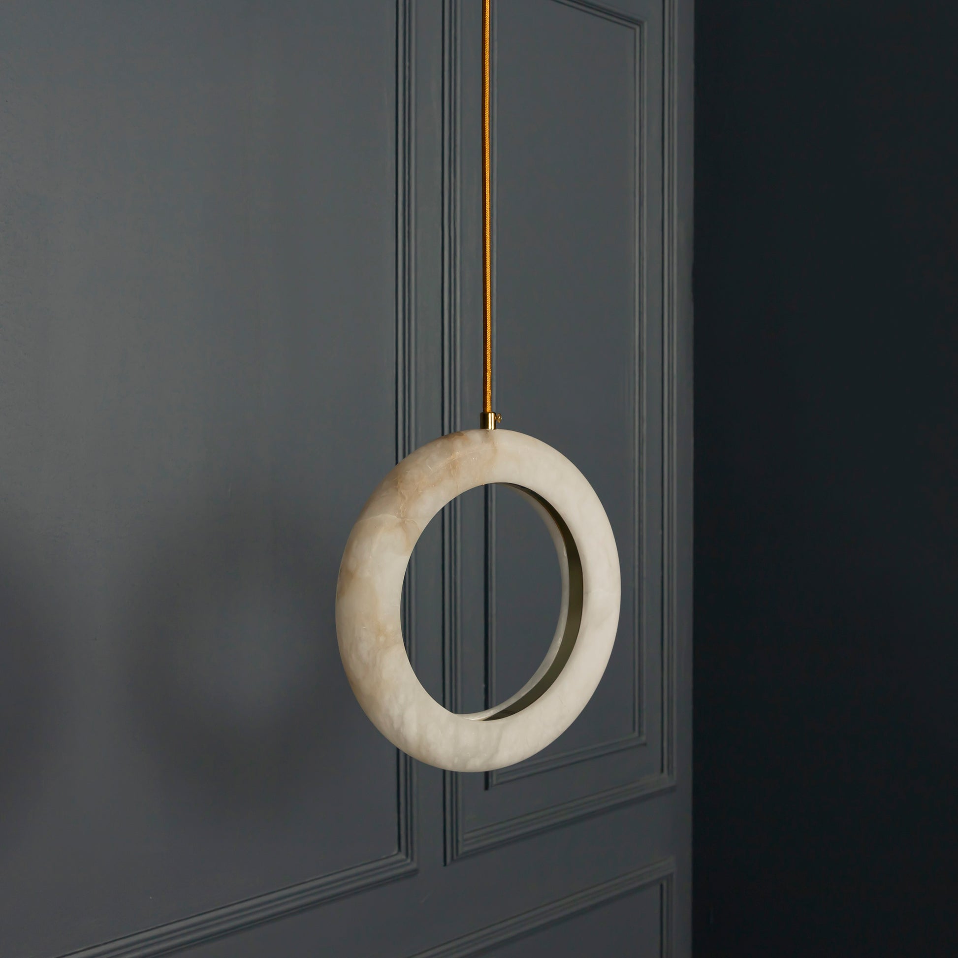 Gamba Sarkıt Avize, eskitme metalin sıcak tonları ve beyaz mermerin zarif dokusuyla yaşam alanlarına modern bir zarafet katar. 25 cm ölçüsüyle minimal ama dikkat çekici bir duruş sergileyen tasarımı, mermerin damarlı yapısı sayesinde ışığın doğal bir ışıltıyla yayılmasını sağlar.