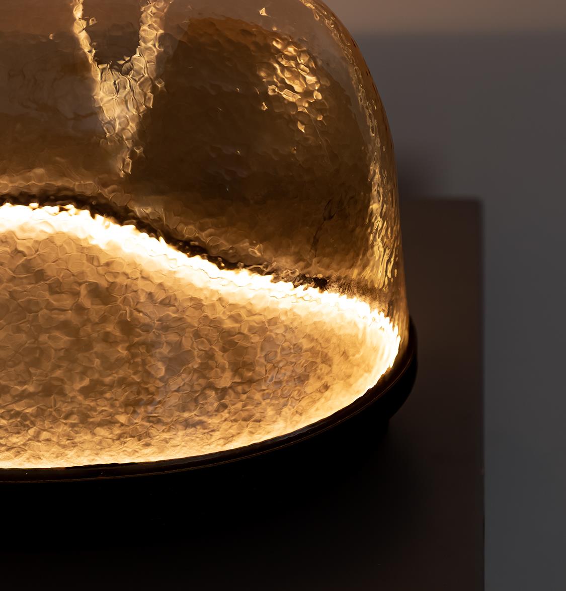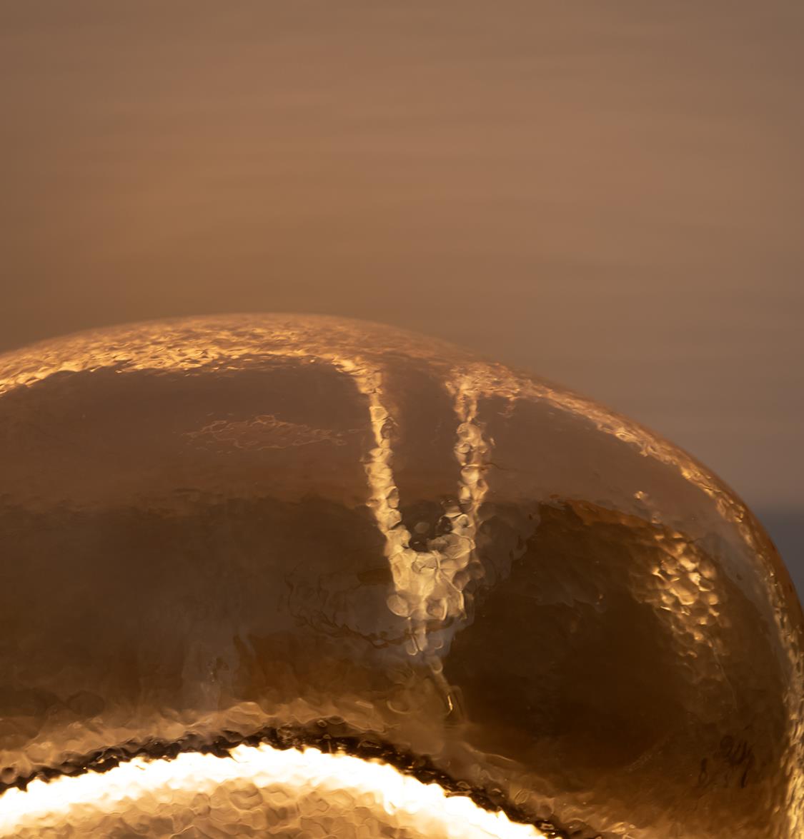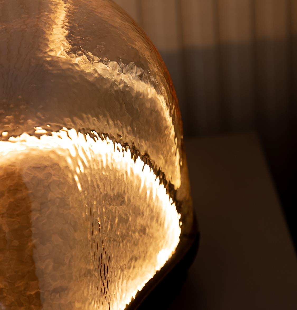 Gambia Masa Lambası, siyah metal gövdesi ve bal cam küresiyle yaşam alanlarında sofistike bir sıcaklık yaratmak için tasarlandı. Işık, cam yüzeyde yumuşakça dağılırken mekâna davetkâr bir parıltı katar.