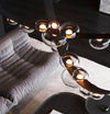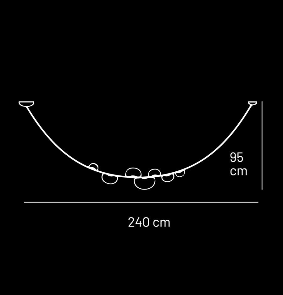 Labranda 7’li Avize, kahverengi deri kemer detaylarıyla mekâna rustik bir karakter katarken, bal cam küreleriyle sıcak bir ışıltı yaratır. 240 cm genişliğindeki etkileyici tasarımı, geniş salonlarda veya yemek alanlarında dekoratif bir odak noktası olur.
