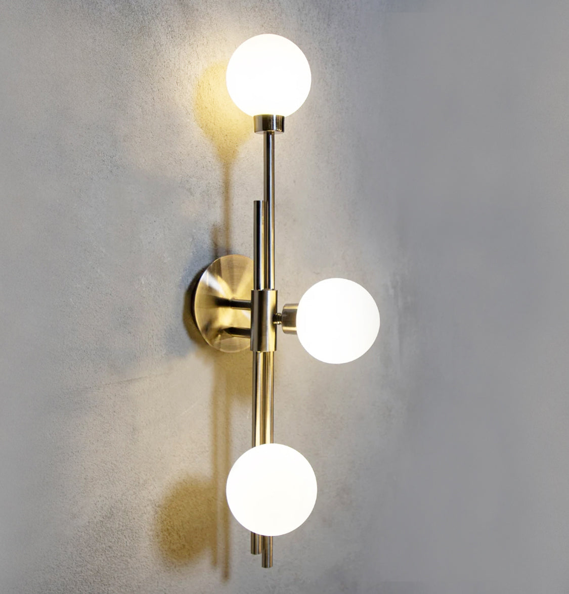 Cam kürelerin içerisinden süzülen ışık, sıcak bir atmosfer yaratırken aplik, hem şıklığı hem de fonksiyonelliği bir arada sunar.