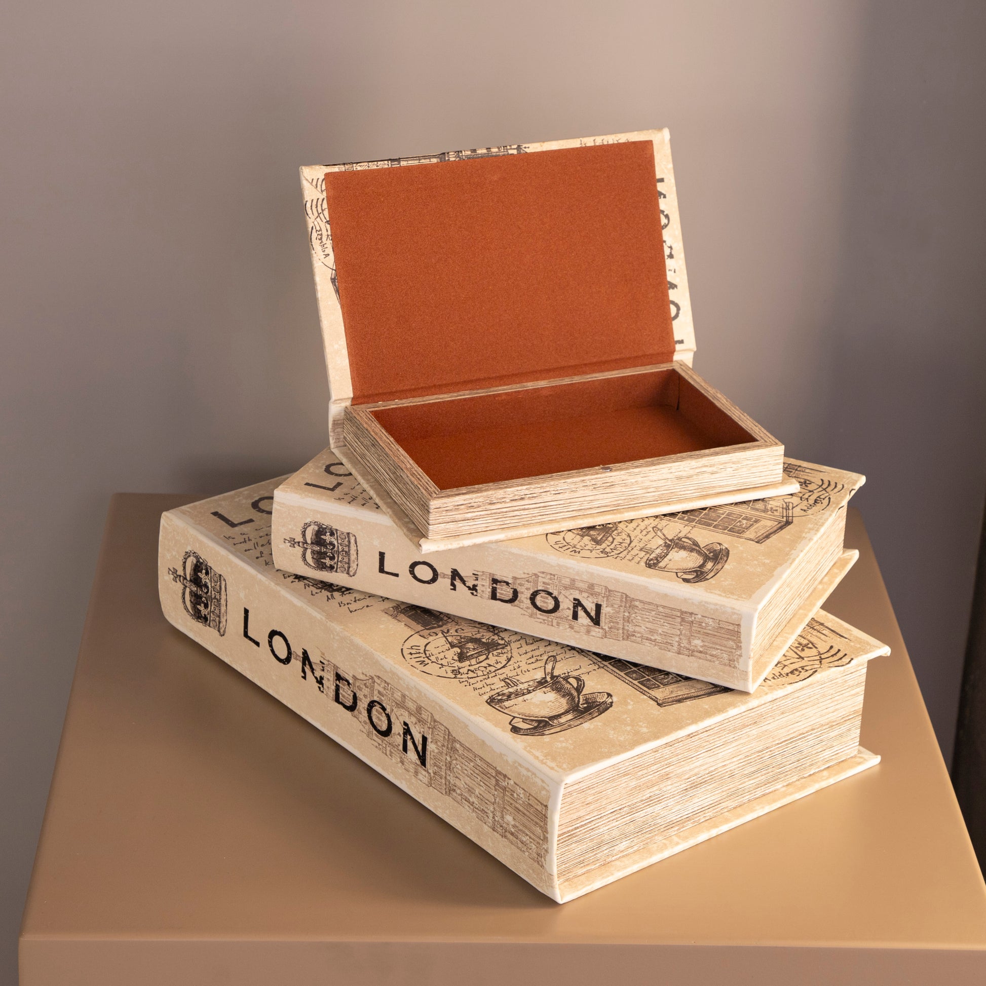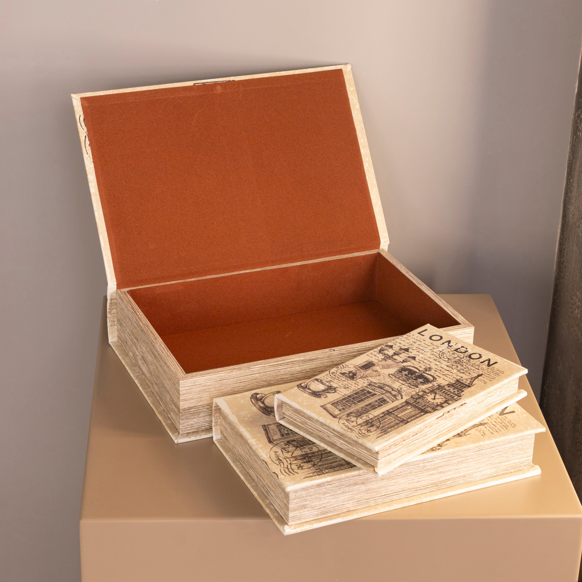 Londra Üçlü Krem Rengi Kitap Kutusu