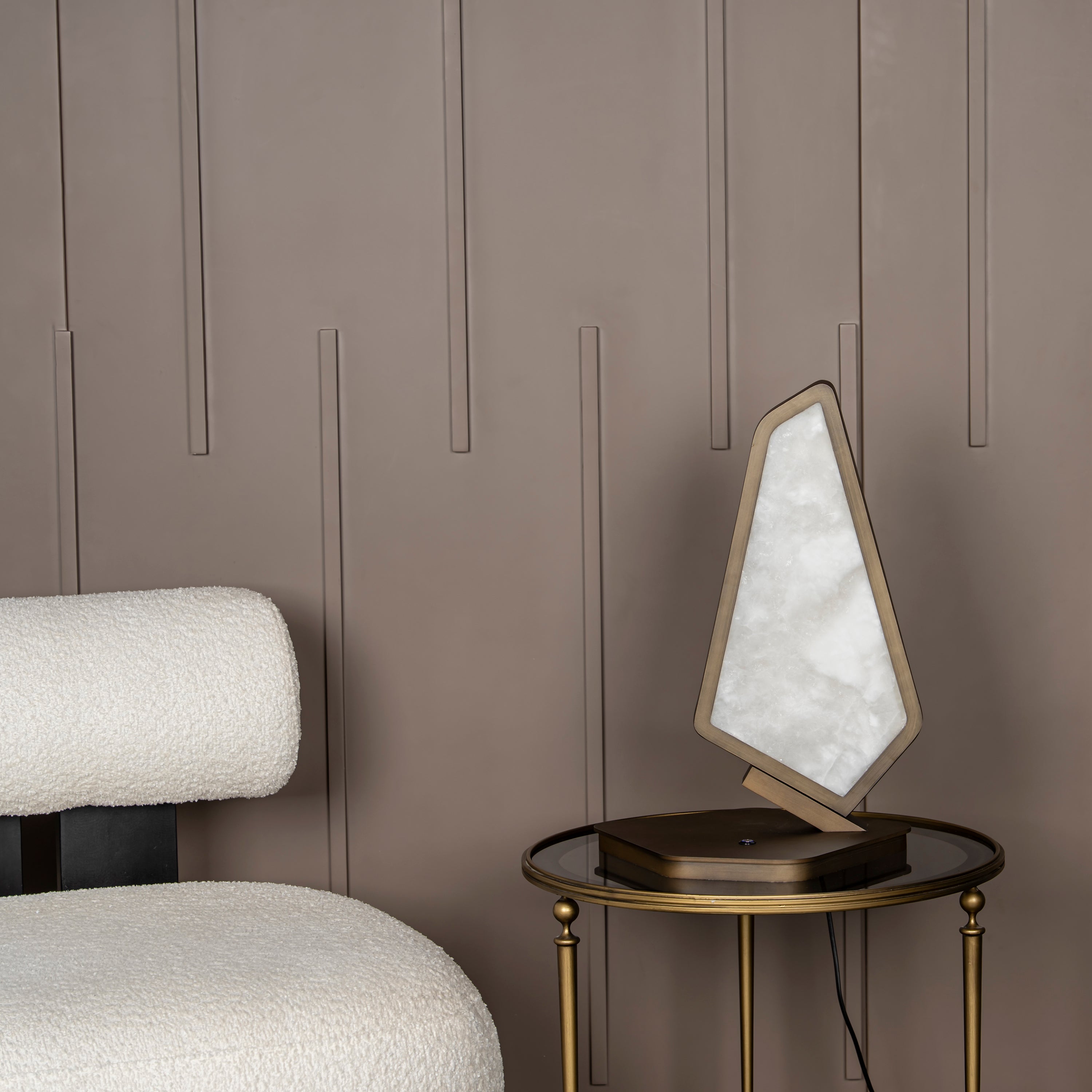 Miracle Mermer Masa Lambası, doğal beyaz mermer gövdesiyle mekânlara lüks ve zarif bir dokunuş kazandırırken, eskitme paslanmaz çerçevesiyle modern ve artistik tasarımı bir araya getirir. Geometrik mermer yapısıyla özgün ve çağdaş çizgilere sahip olan Miracle, yatak odası ve oturma odası gibi alanlarda göz alıcı bir tasarım öğesi olur.