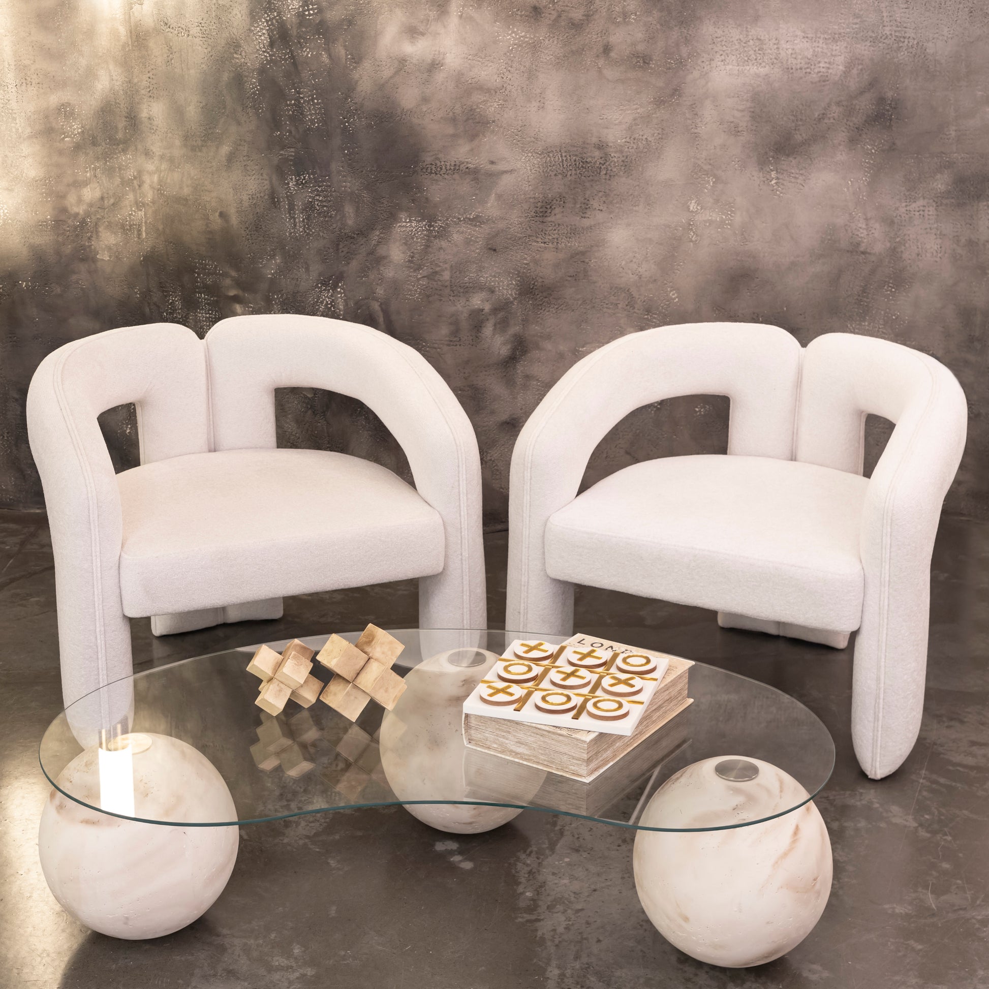 MOIR Berjer, modern çizgileri ve beyaz renginin sadeliğiyle yaşam alanlarına ferah bir zarafet katıyor. Bukle kumaş dokusu yumuşaklık hissi verirken, ahşap iskeletin sağlamlığı ile uzun ömürlü kullanım sağlar.