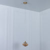 Odense Sarkıt Avize, eskitme metalin sıcak tonlarını bal rengindeki kabarcıklı camla buluşturur. Basık formu sayesinde ışık, camın içindeki kabarcıklar arasında dans ederek mekâna sıcak ve davetkâr bir ambiyans katar.