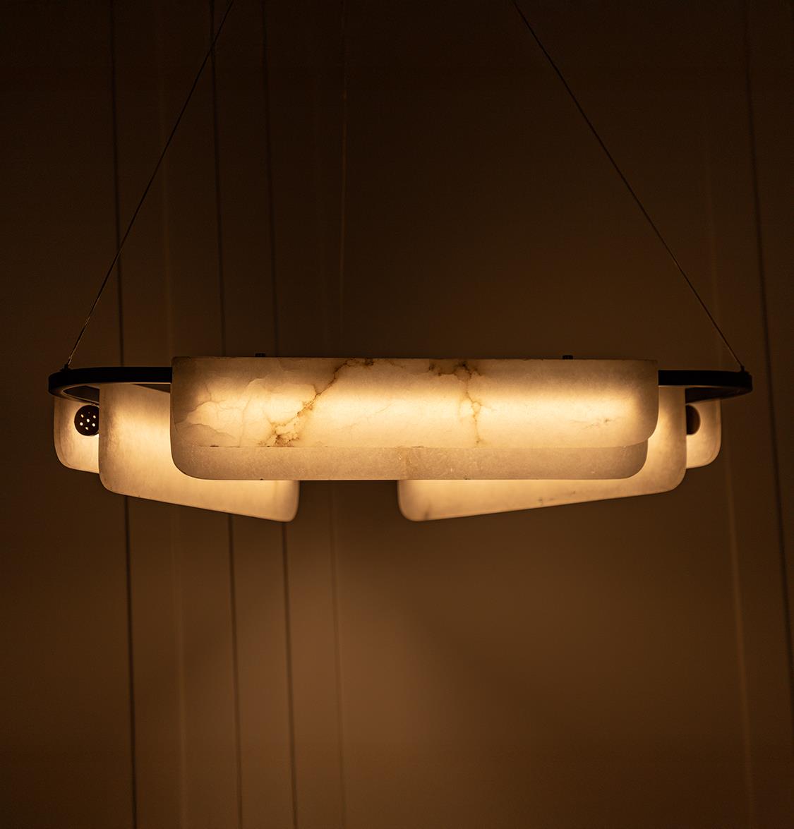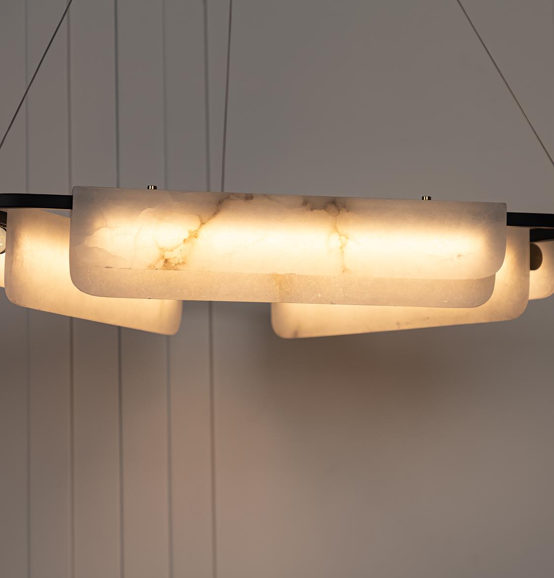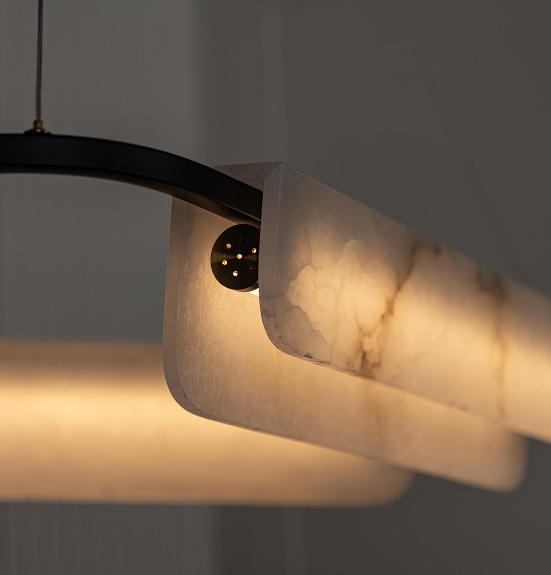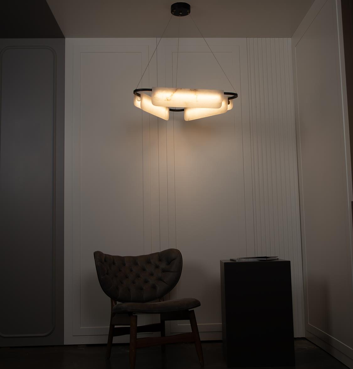 Yarı geçirgen mermer yüzeyler LED ışığı yumuşatır; homojen ve sıcak bir aydınlık sağlayarak büyük yemek masaları ya da oturma alanlarında gölge yapmadan ışığı eşit dağıtır. Zamansız renk paletiyle farklı dekorasyon stilleriyle kolayca uyum sağlar.