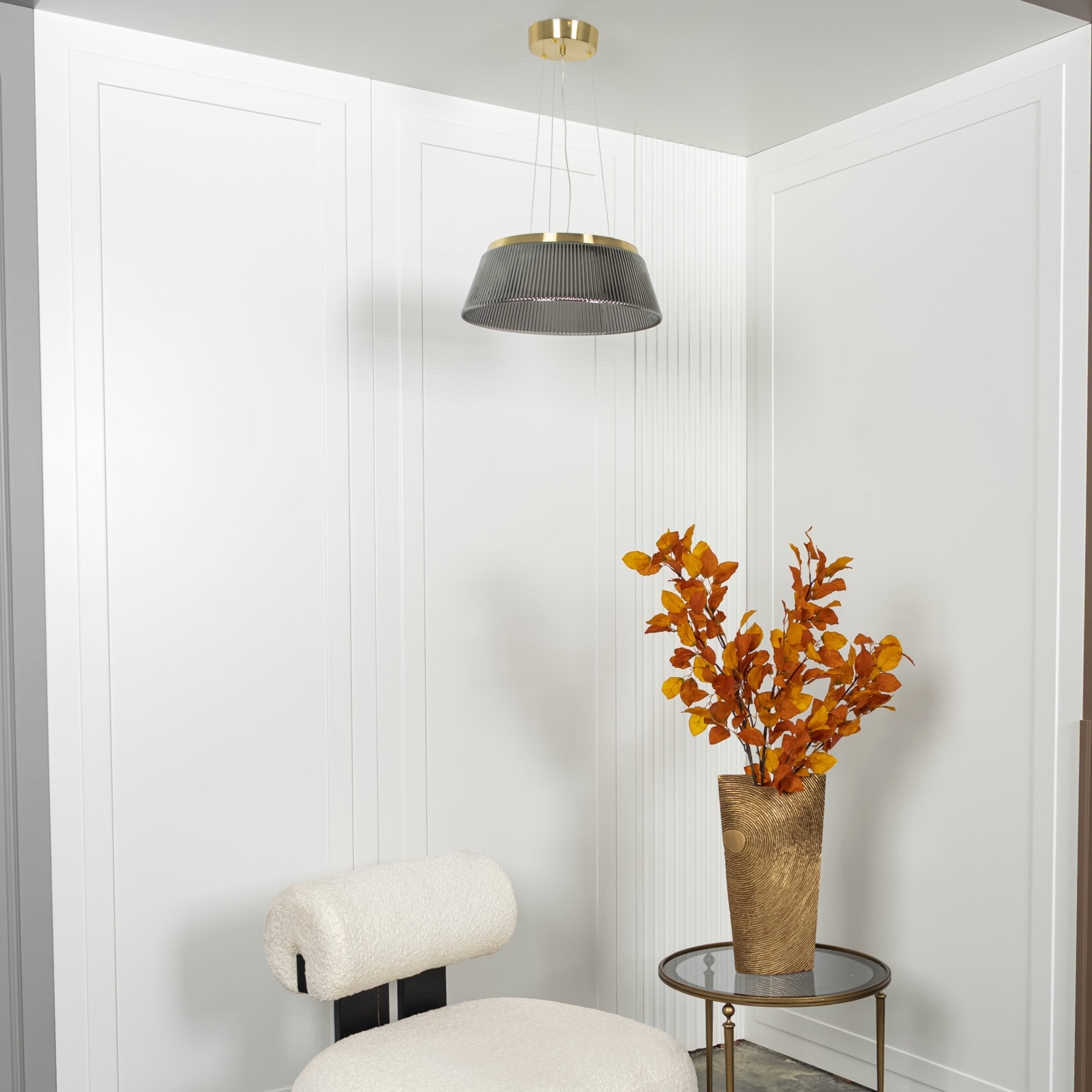 Oyster Tekli Opal Cam Sarkıt, opal cam gövdesiyle mekânlara yumuşak ve şık bir dokunuş kazandırırken, eskitme metal detaylarla zarif ve modern tasarımı bir araya getirir. Pileli opal cam yapısıyla özgün ve minimalist çizgilere sahip olan Oyster, yemek masası ve mutfak adası gibi alanlarda göz alıcı bir aydınlatma öğesi olur.