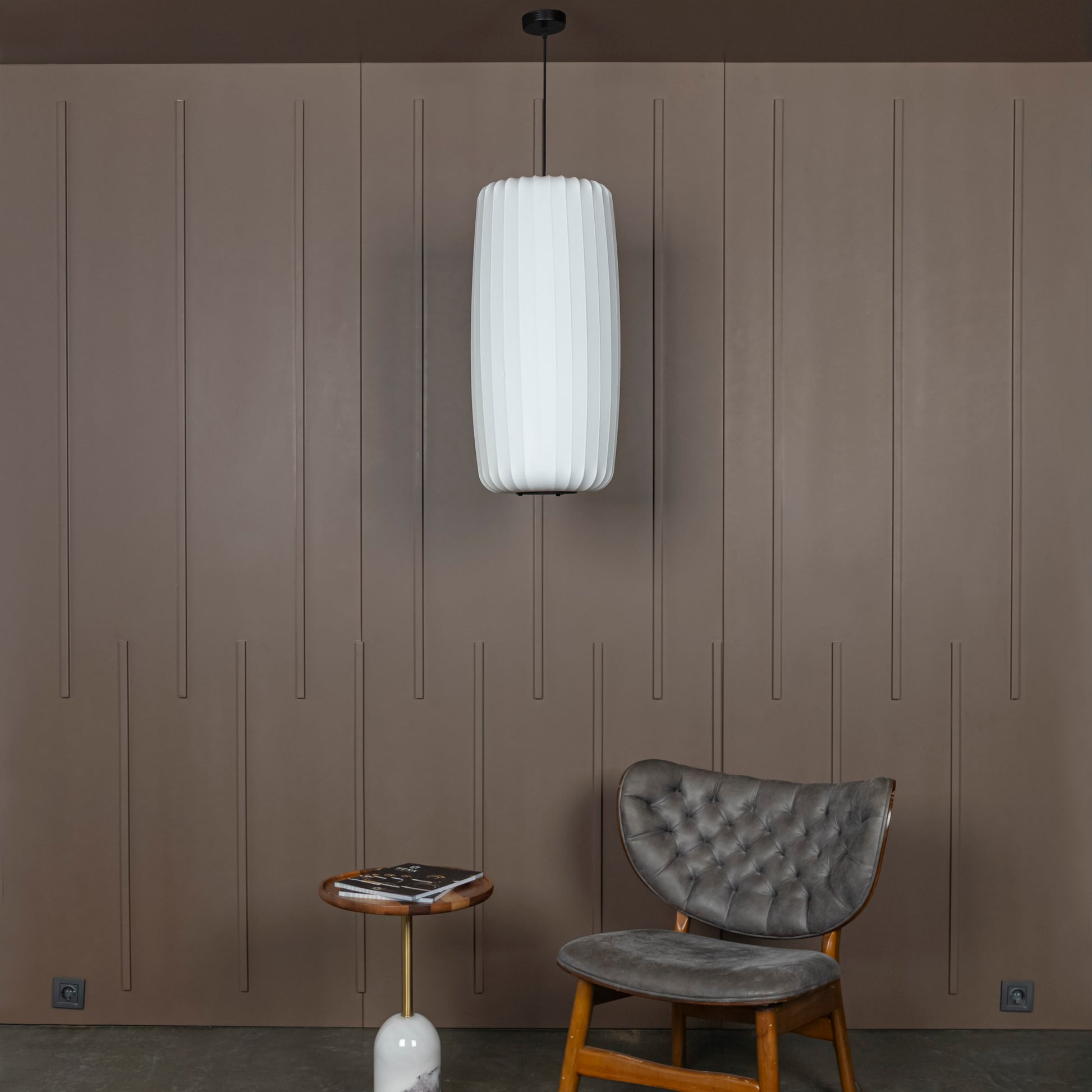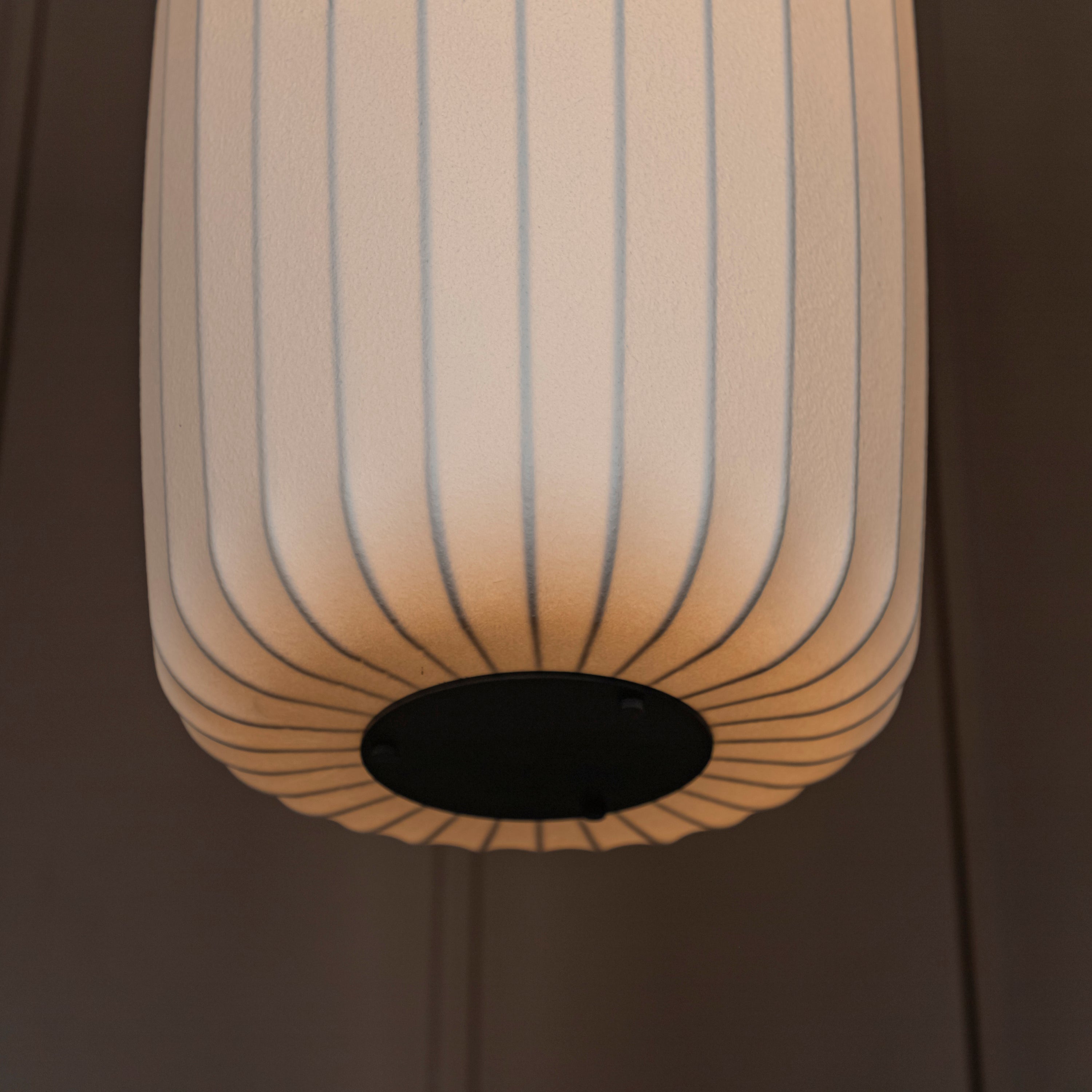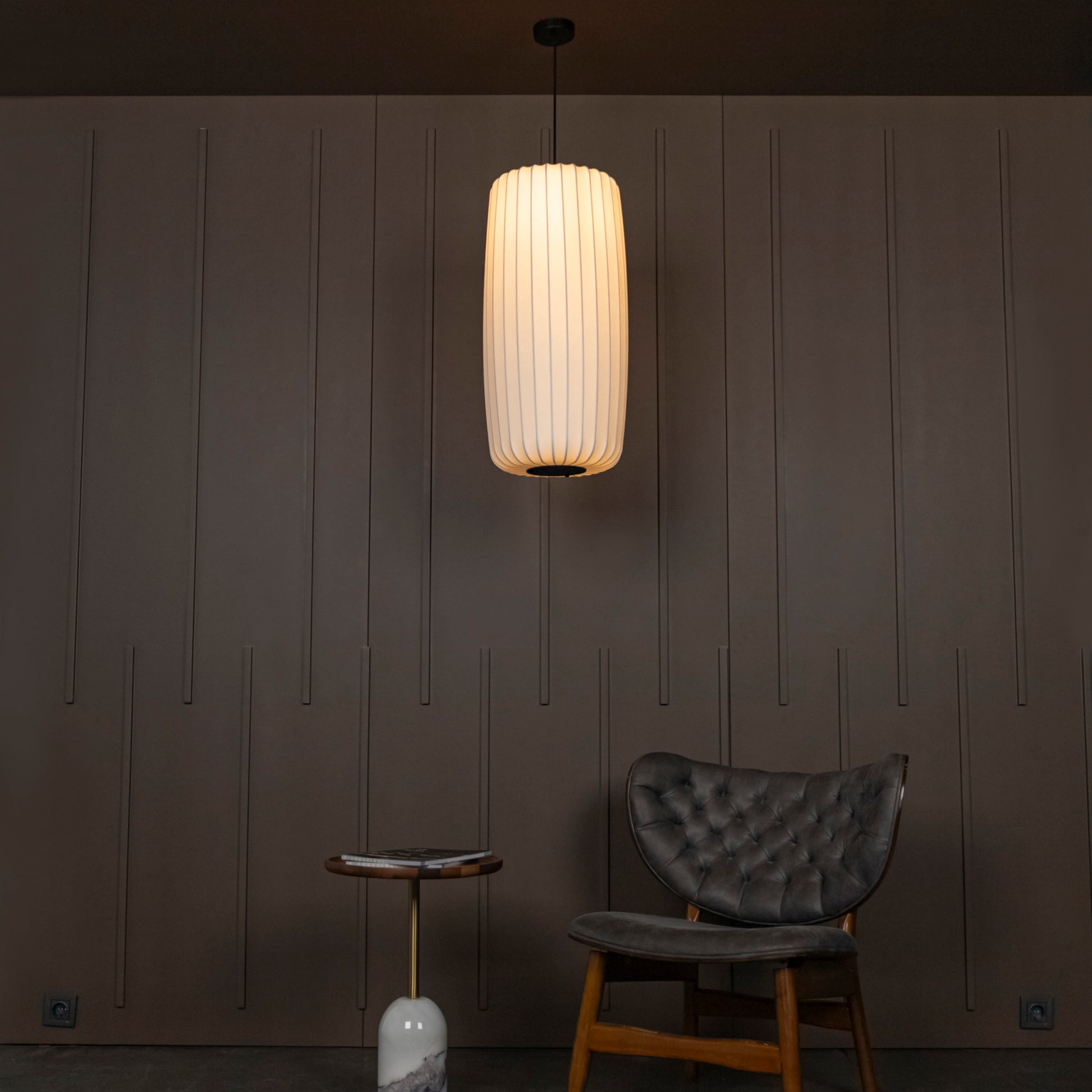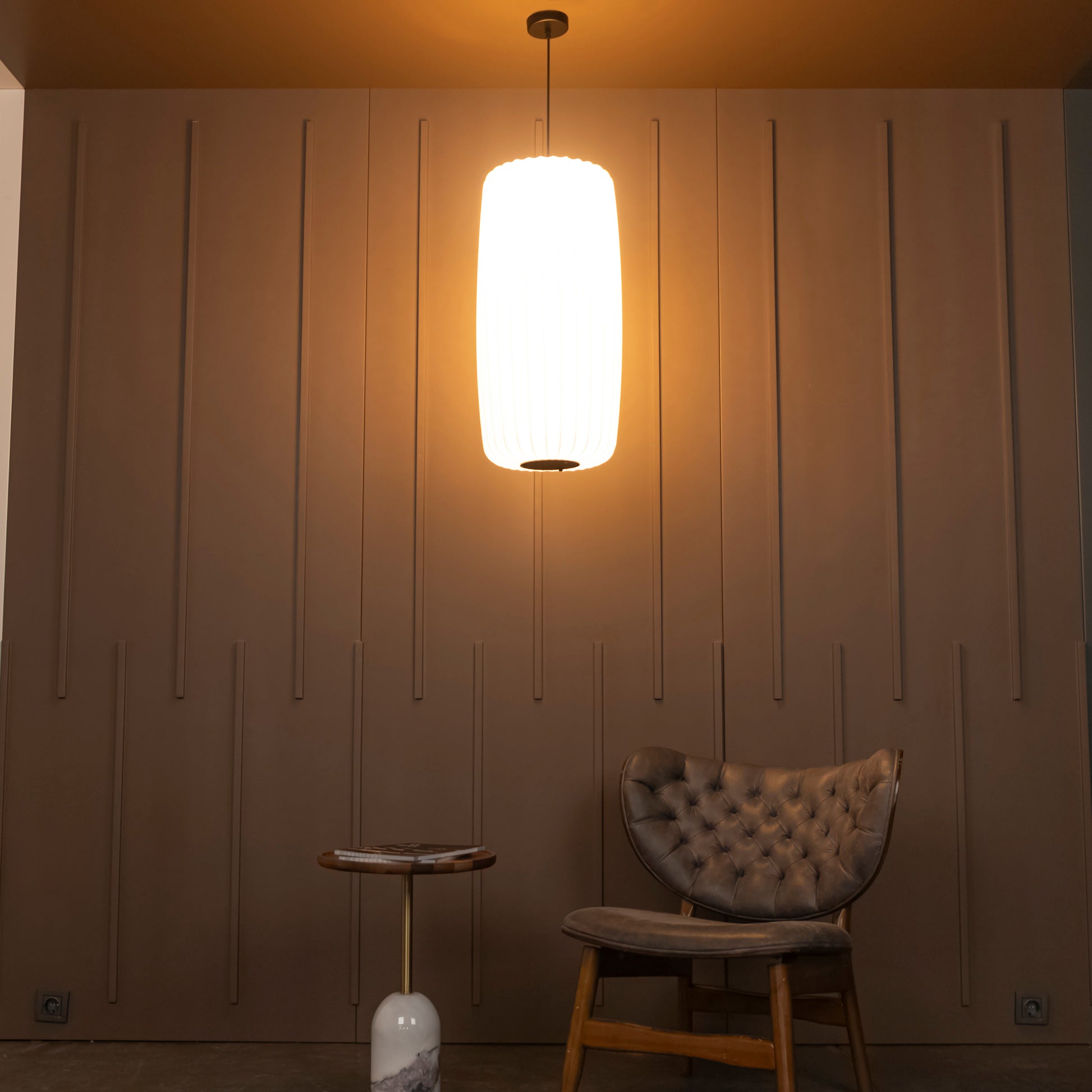 Planet Sarkıt Avize, beyaz polimerin yumuşak dokusunu siyah metalin modern çizgisiyle buluşturur. Silindirik formu, ışığın mekânda dengeli ve şık şekilde yayılmasını sağlar.