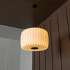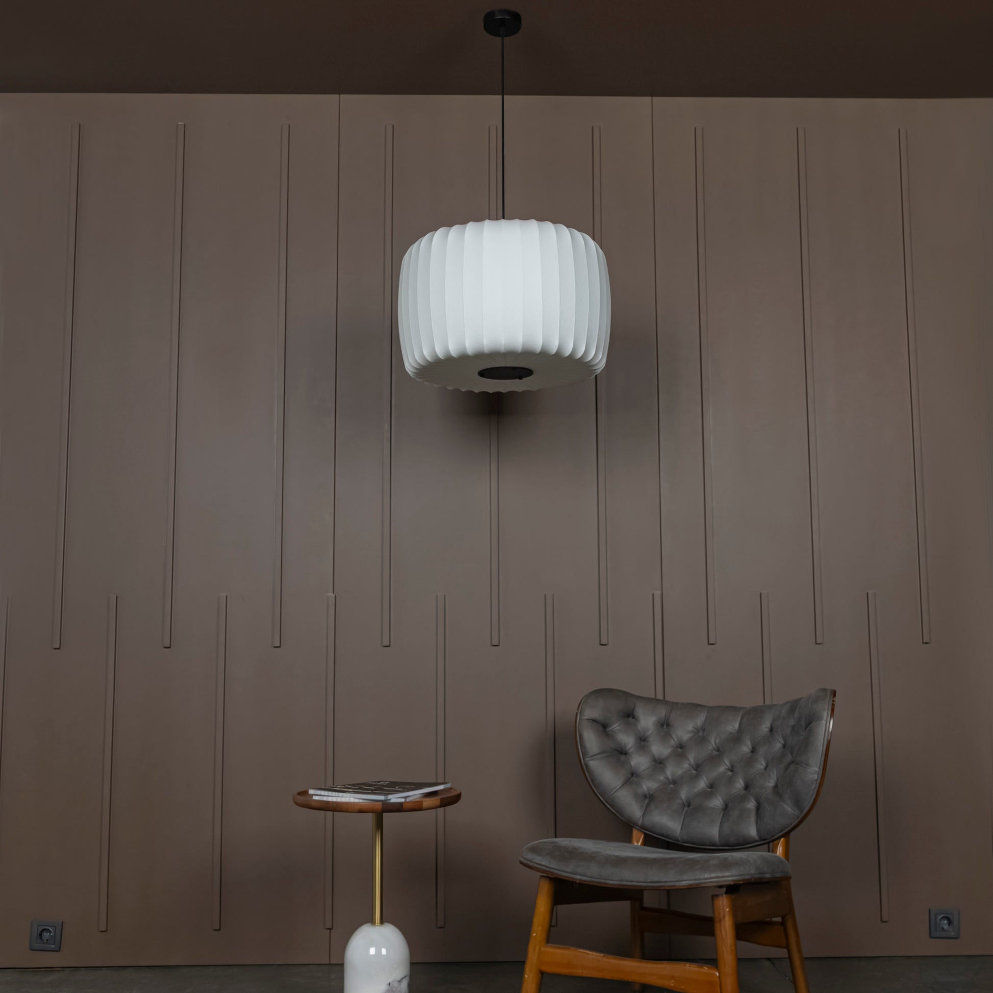 Planet Sarkıt Avize, beyaz polimerin yalın güzelliğini siyah metal detaylarla modern bir çizgiye taşır. Geniş silindirik formu, ışığın mekânda estetik bir şekilde yayılmasını sağlar.