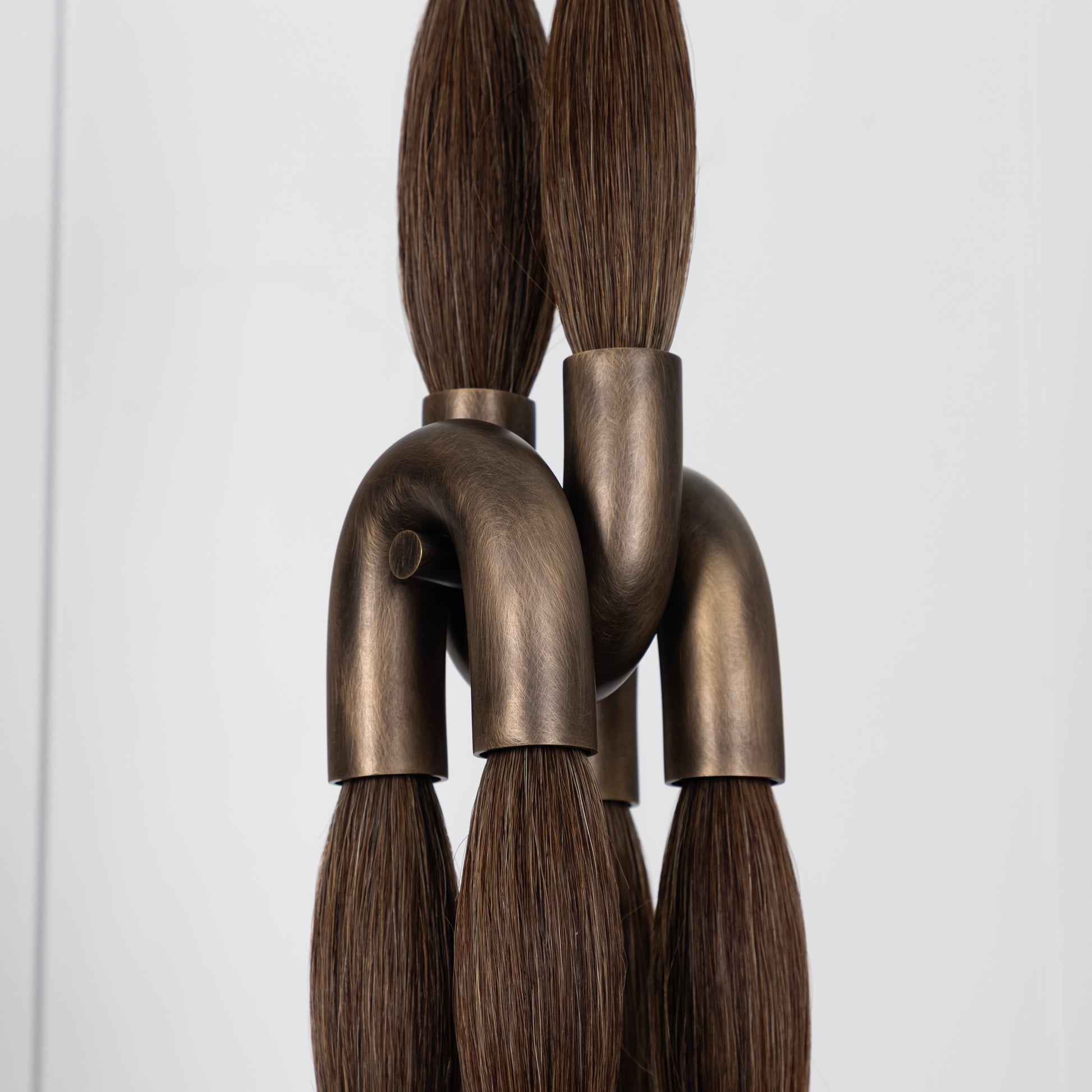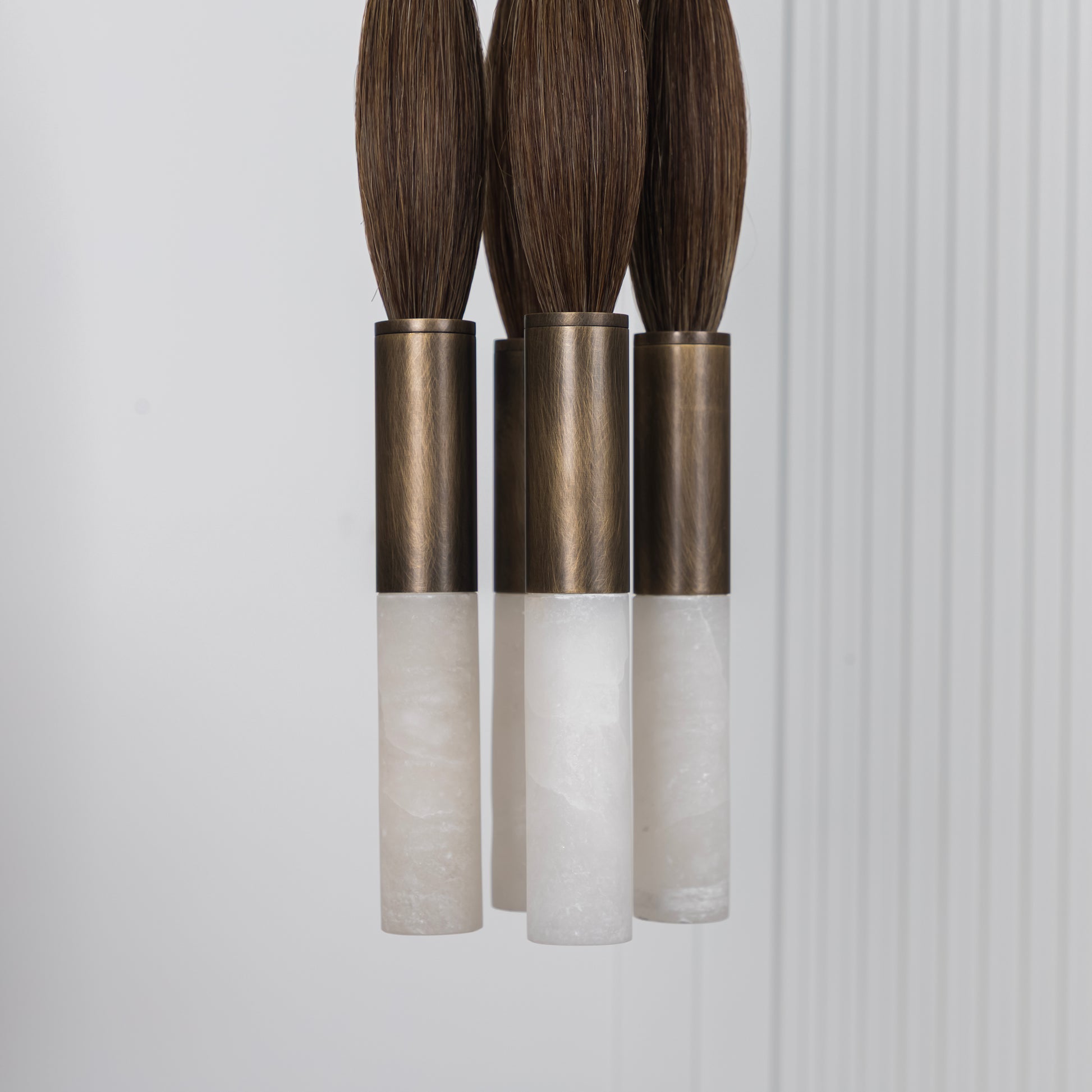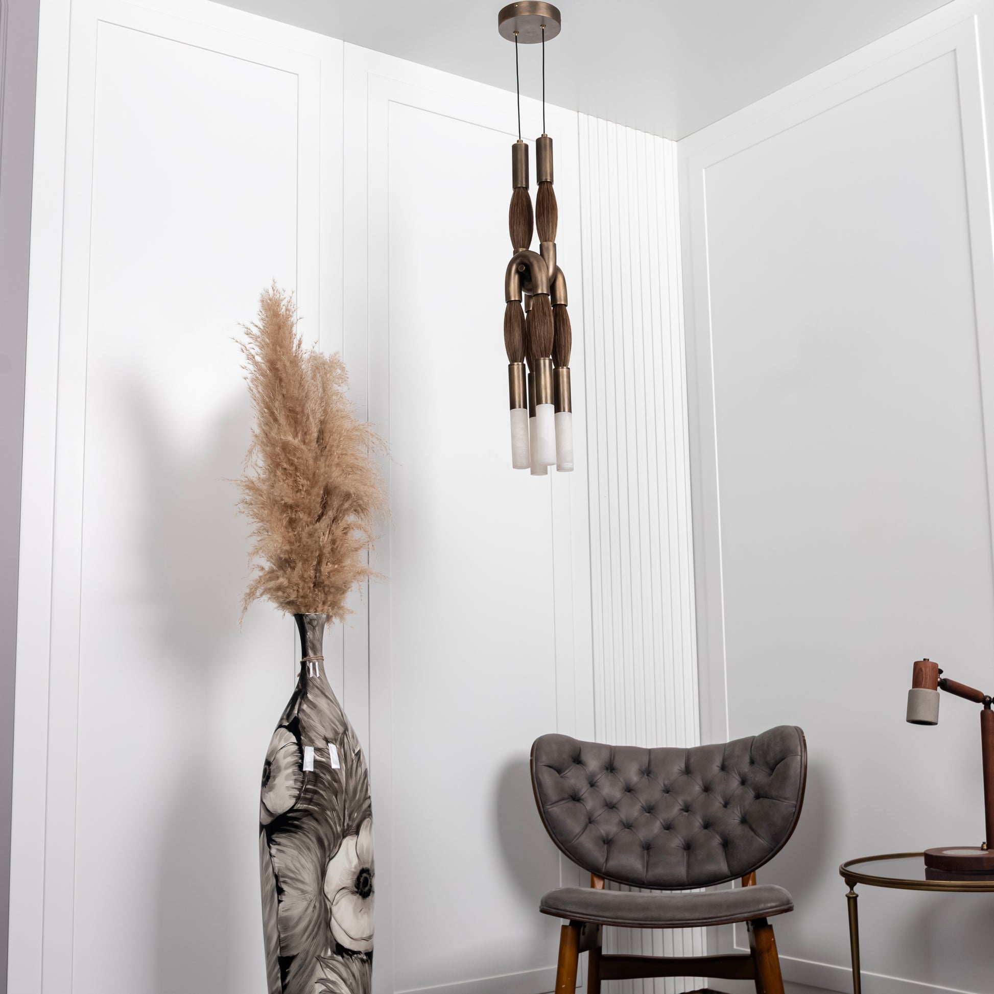 Pony Avize, ikili sarkıt formu ve koyu eskitme metal yüzeyiyle mekâna güçlü bir vurgu yapar. Zarif çizgilerle buluşan mermer detaylar, doğal beyaz dokusuyla tasarıma dinginlik katarken, her bir parçanın kendine özgü damar yapısı avizeye eşsiz bir karakter kazandırır. At saçı formlu yapısıyla dinamik ve estetik bir duruş sergiler.